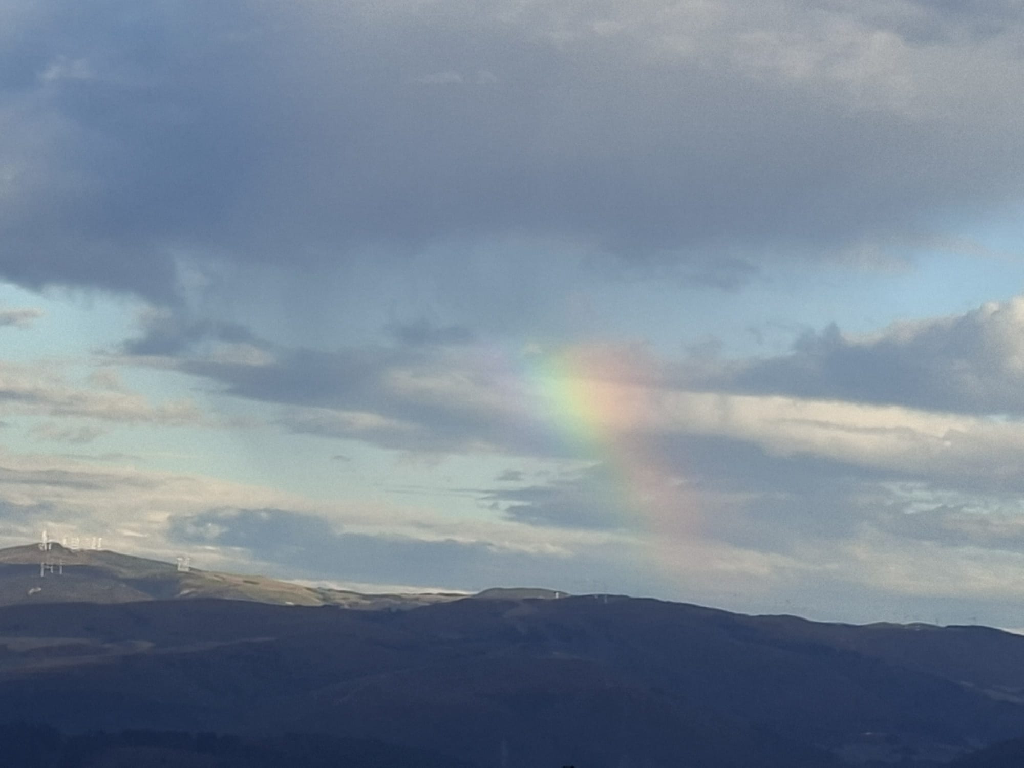 Po poti nas nenehno nagovarja narava v vsej svoji lepoti – od gob, kostanja, kravic, raznovrstnih cvetočih rastlin. Slavim Gospoda v vsem njegovem stvarstvu. Posebej me je nagovorila čudovito cvetoča rumena pol metra visoka, izgleda da suše vajena rastlina. Vabeči živo rumeni cvetovi na steblu polnem močnih trnov – podobna je Kristusovem trnu, ki je meni zelo drag. Tako kot je s preizkušnjami in blagoslovi prepleteno naše življenje. Ravno prav nas je večkrat popršil dež, da je z nas sproti spiral naš znoj in vas nenehno opominjal na večjo pozornost na vsakem koraku po kamnitih tleh. Na ustih se mi nariše nasmeh, ko zagledam na nebu mavrico. Še vidno znamenje Božje zaveze na naši poti. Gospod, hvala, da si tako pozoren do nas in nas nenehno vabiš, da bolj razmišljamo po Božje kot po človeško. Hvala ti, da te smemo slaviti, častiti in ti služiti na tej Božji poti.
