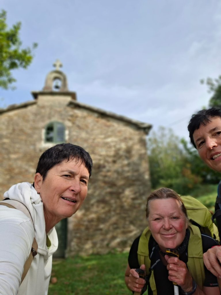 S strahospoštovanjem zremo v nov dan, novih 28 km bližje sv. Jakobu… Hladno jutro začnemo z zajtrkom v naravi in duhovno mislijo, kot popotnico na današnje romanje. Naj bomo človek v enem kosu, nas nagovori gospod Jože. Kar govoriš, tudi misliš, živiš in si.