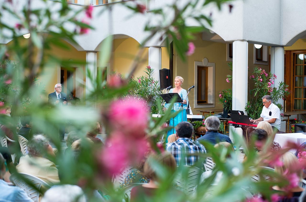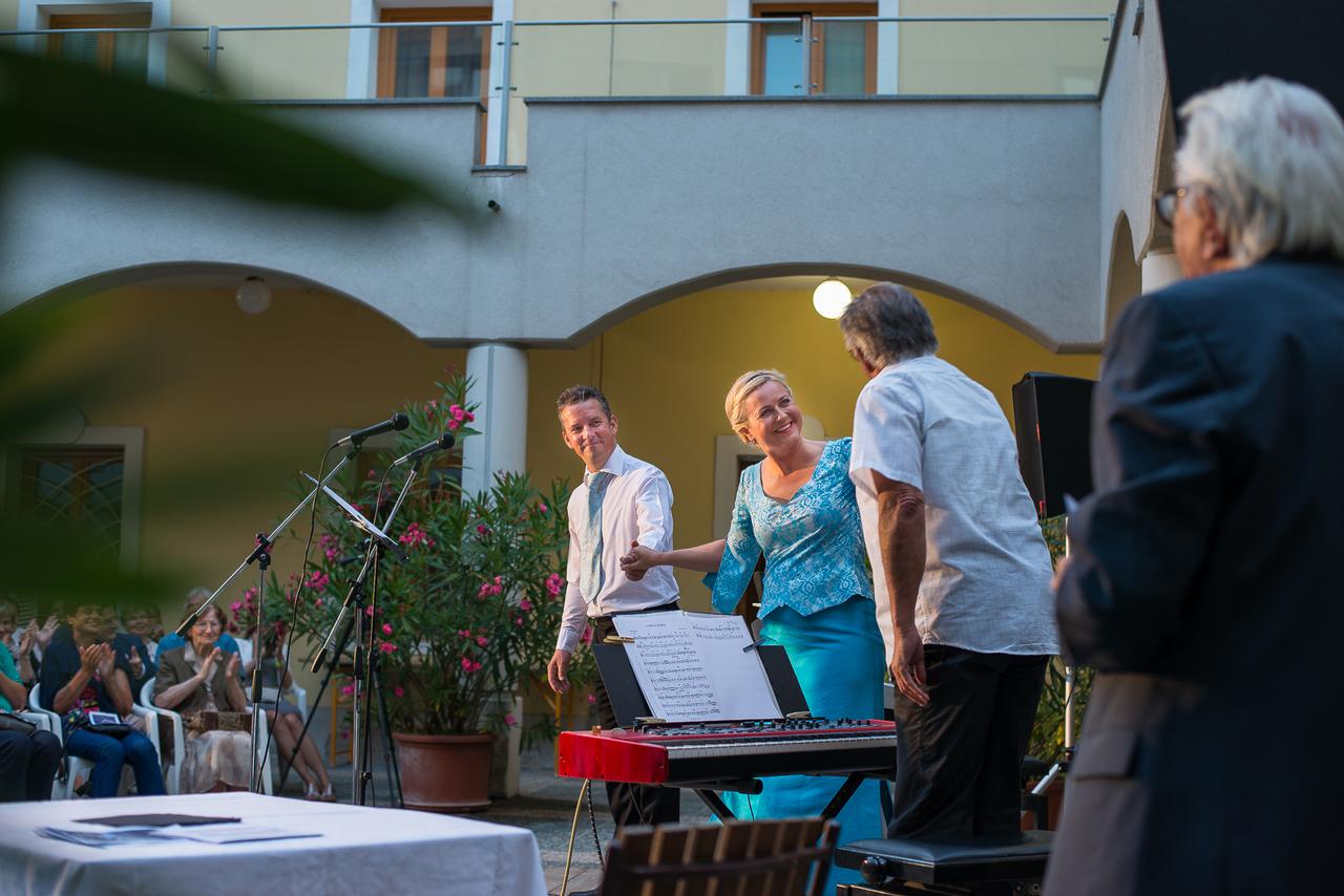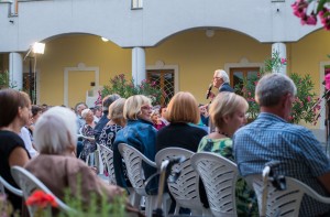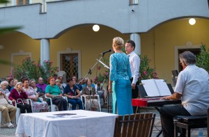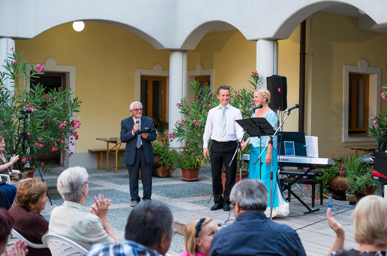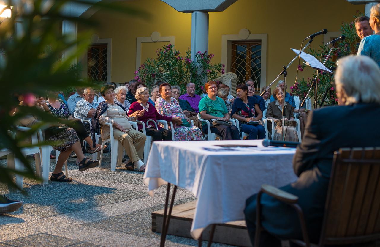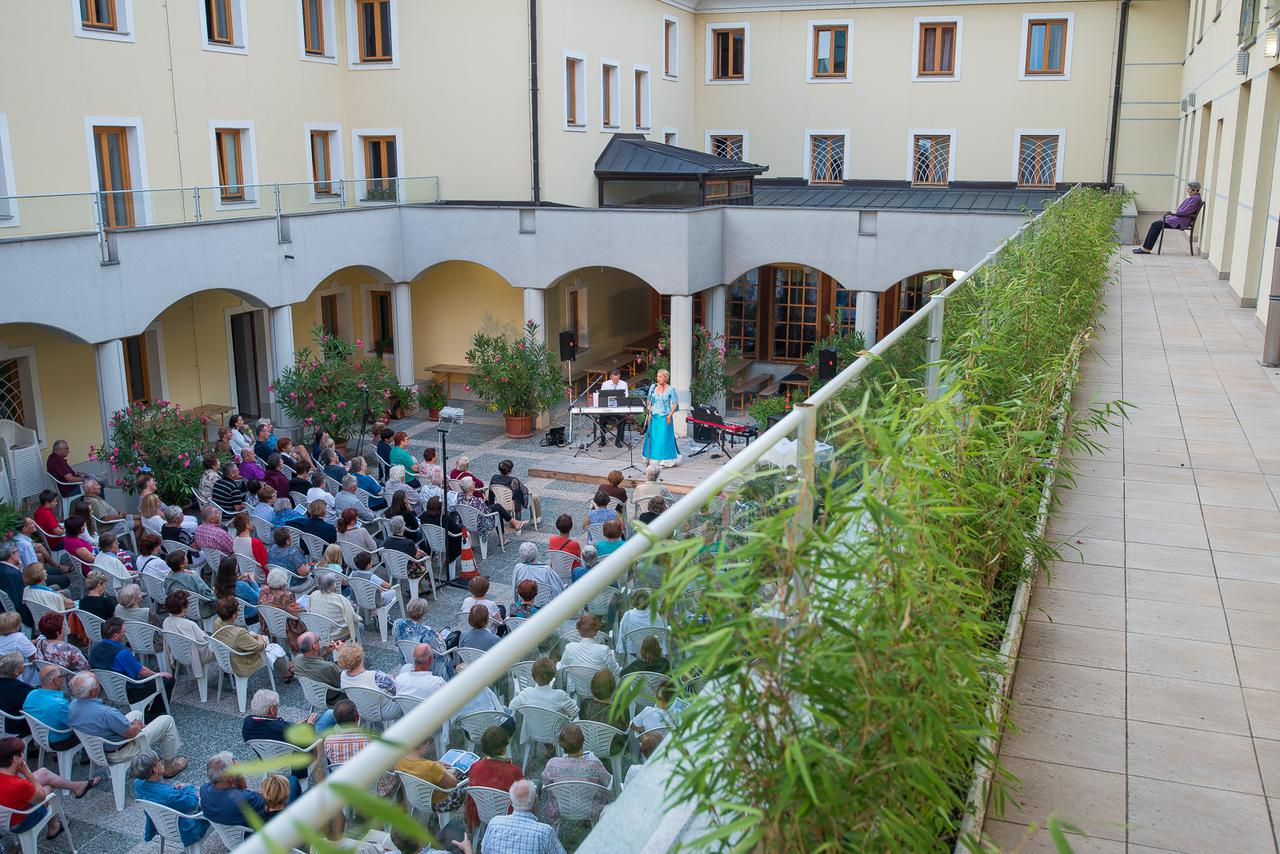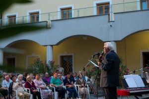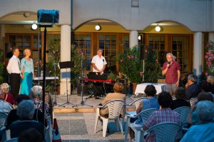 Po duhovno bogatem romanju na Brezje s stanovalci Doma in udeleženci duhovno počitniških dni, smo v atriju doživeli popoln glasbeno poletni večer.