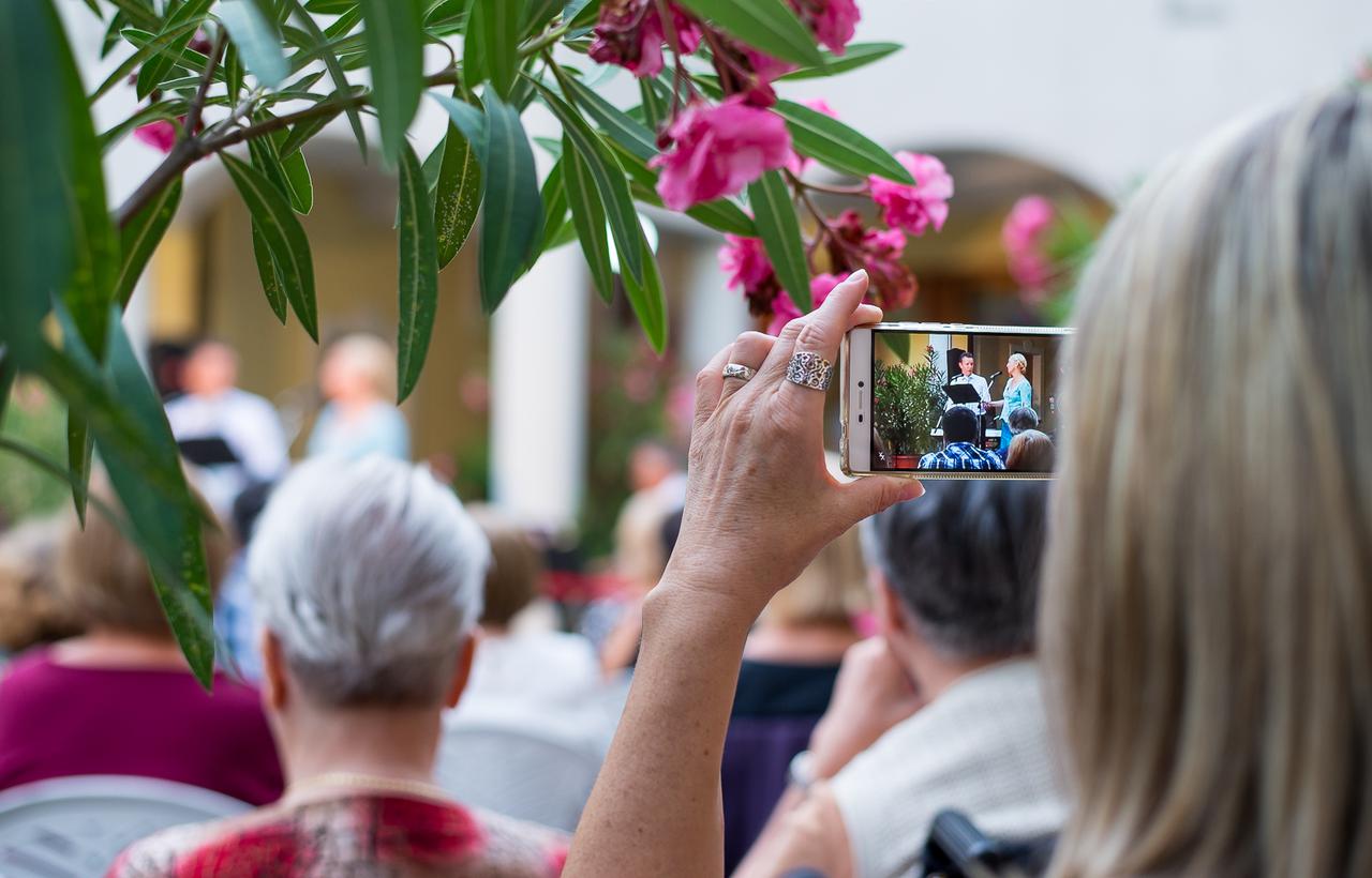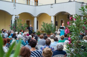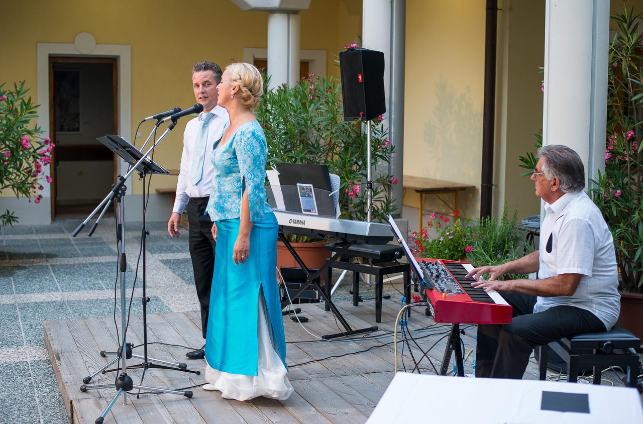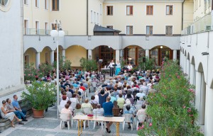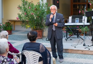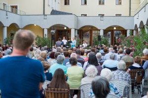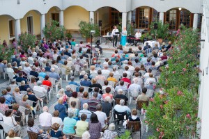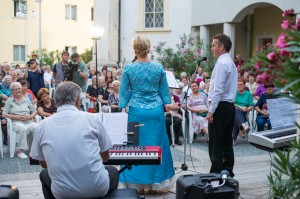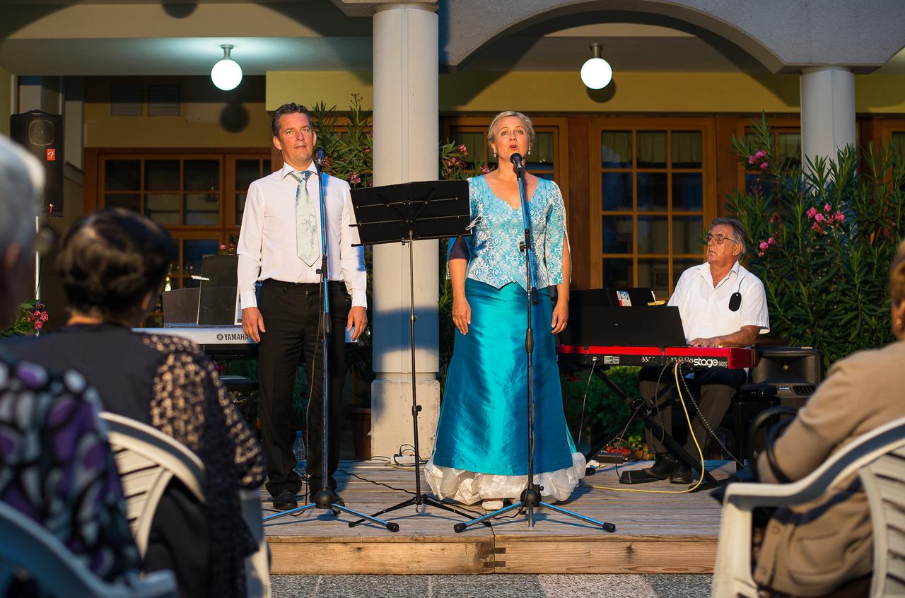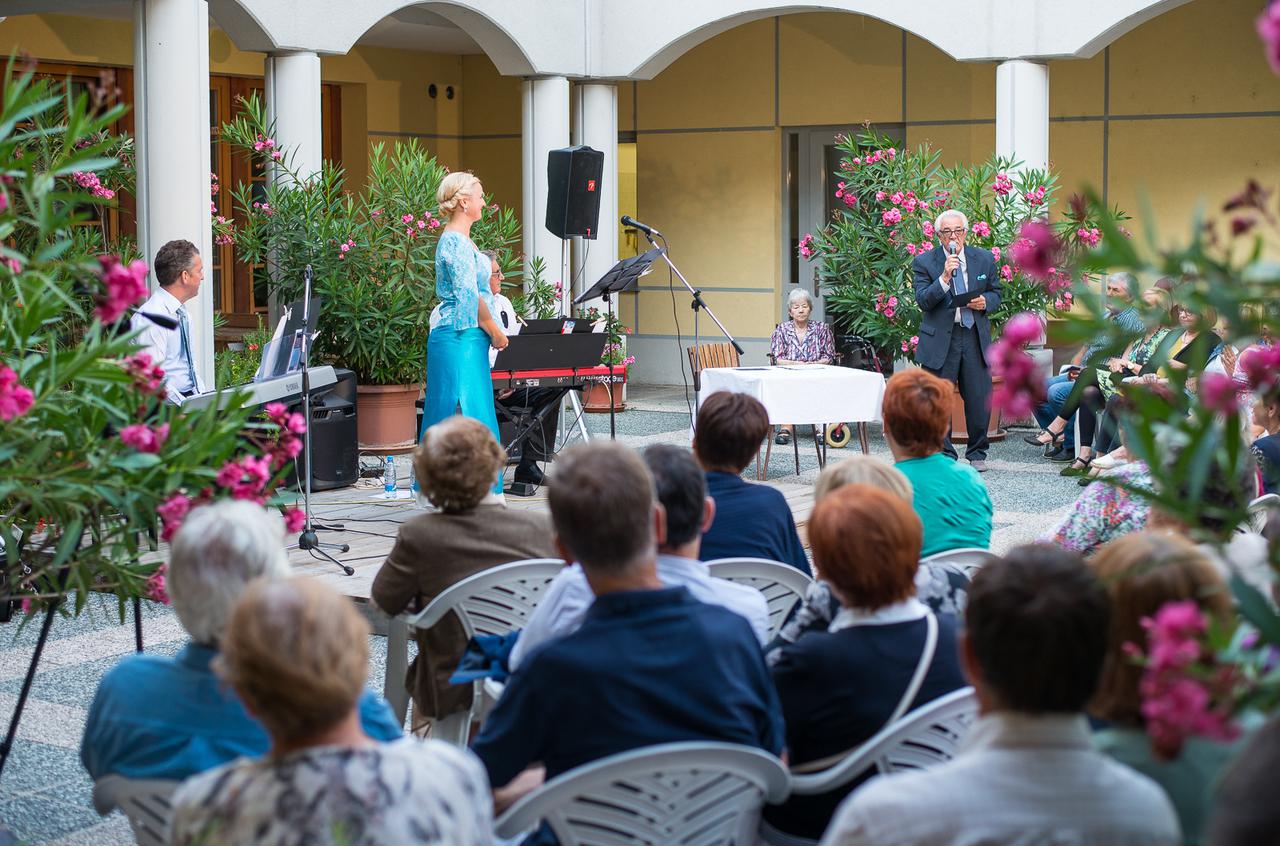 Po duhovno bogatem romanju na Brezje s stanovalci Doma in udeleženci duhovno počitniških dni, smo v atriju doživeli popoln glasbeno poletni večer.