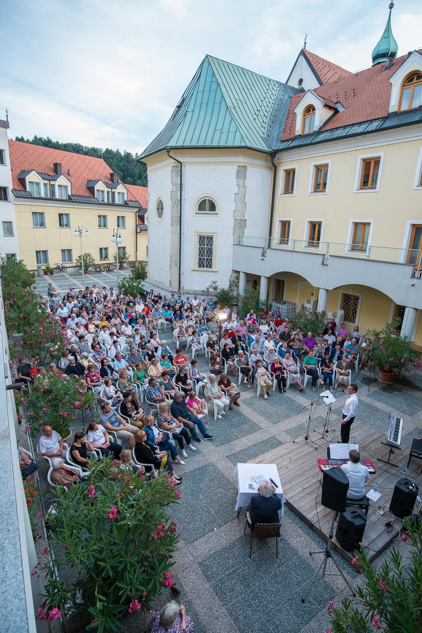 Na koncertu, večeru v atriju, z naslovom »Od narodne pesmi preko operete in muzikla do šansona in popevke«, smo prisluhnili izjemnim glasbenim talentom Jožefovega hriba; sopranistki, nedavni prejemnici nagrade Sama Smrkolja Andreji Zakonjšek Krt, solo zboristu Ljubljanske Opere Primožu Krtu, vsestranskemu umetniku Ivo Umeku, ter profesorju Slavku Deržku, ki je večer hudomušno strokovno povezoval.