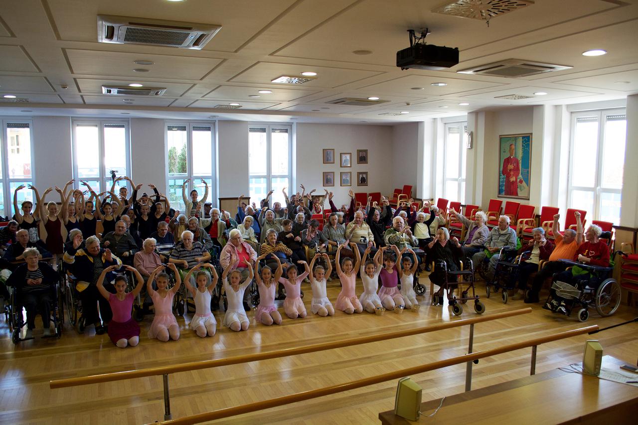 V soboto, 7.11. je bil za naše stanovalce poseben dan. Iz plesne šole Harlekin so zanje pripravili predstavitev in zgodovino baleta ter tudi nekaj baletnih variacij. Mentorica Ana Jenček nam je povedala nekaj o osnovnih pozicijah in kako se sestavlja koreografijo za posamezne nastope. Zagotovo so največ čudenja in aplavza poželi prikazi, za nas nemogočih, skokov, raznožk in podobnih figur. Dekleta, ki se odločijo za tovrstni ples so občudovanja vredna, ne samo zaradi svojega znanja, temveč predvsem zaradi trdega dela in odpovedovanja, ki je pri takšni umetnosti neizogibno. Želimo si, da bi nas še kdaj obiskali.