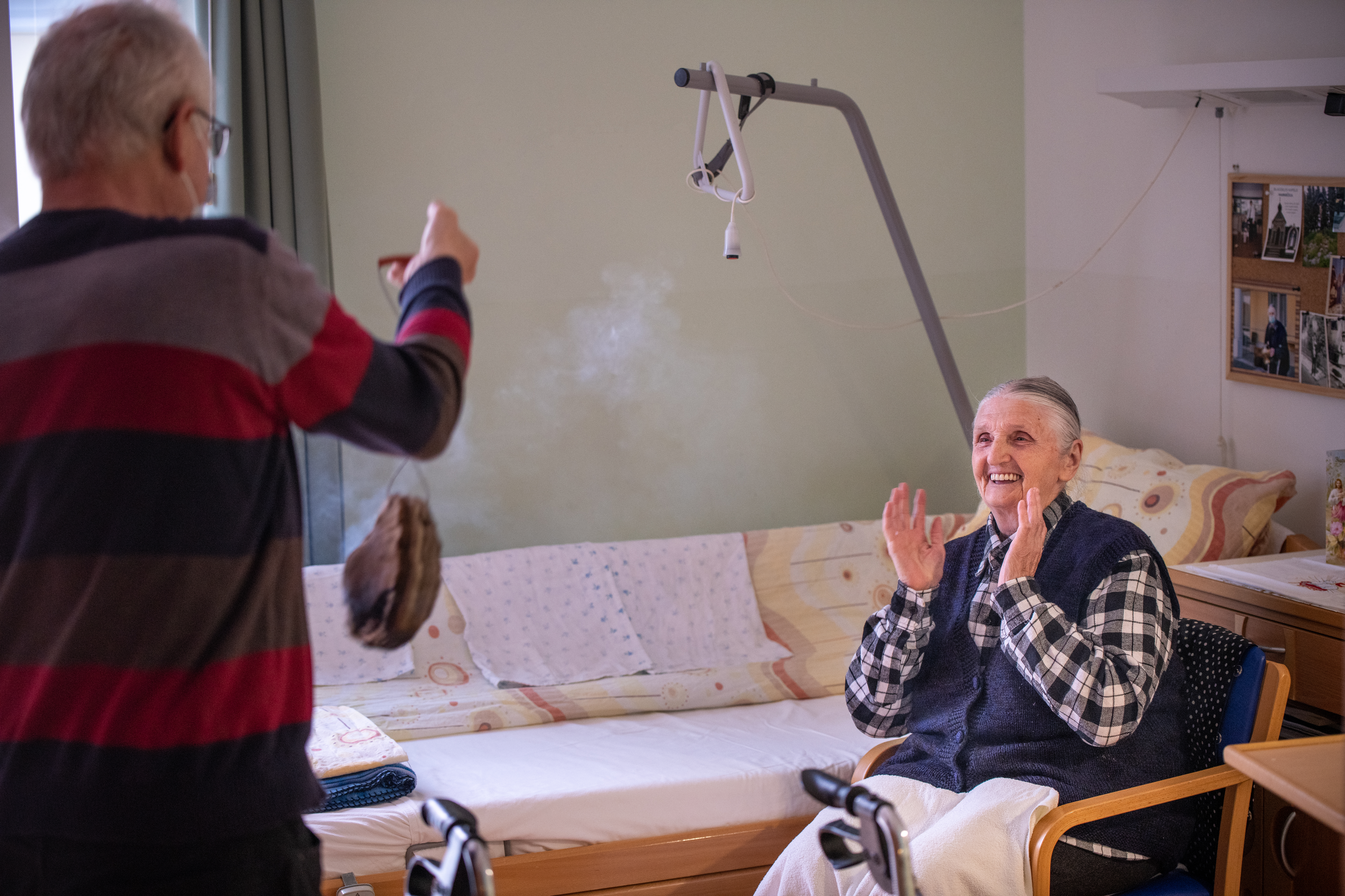 Veliki teden tudi v našem Domu obuja veliko spominov. S kadilom jih bomo povezali v hvaležnosti in upanju, da nam veselja velike noči tudi epidemija ne more okrniti. K temu bo gotovo pripomogel tudi blagoslov jedi, ki ga bomo preko televizijskega kanala prešali v sobe stanovalcev, ki ga želijo spremljati. Trudimo se, da bi vsem obedom v Domu namenili večjo pozornost, a praznični je bo gotovo deležen. Naj nas drugačne razmere povezujejo na nove načine!
