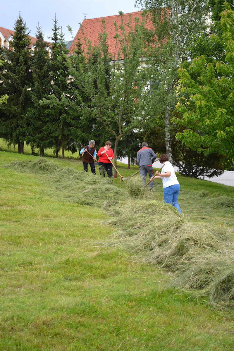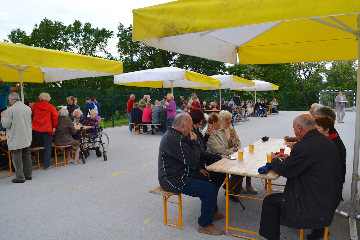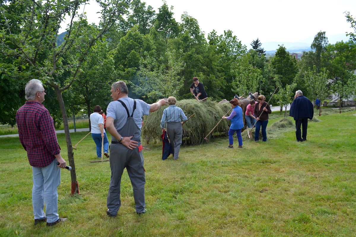 Letos nam je zaigrala Godba na pihala s Svetine, ki je pregnala še zadnje deževne oblake. Zapeli so Ljudski pevci iz Tepanja, Fantje z Jožefovega hriba in zbor zaposlenih. Naj slike predstavijo tudi kmečka opravila, ki smo jih letos obudili in seveda konje, ki so popestrili popoldne. Ob vztrajnem pripravljanju brusketk in primerni kapljici se je vdalo tudi sonce in nam prijetno druženje še primerno ogrelo. Verjamemo, da nam je druženje primerna vzpodbuda, da se bomo trudili do naslednjega druženja biti še bolj pozorni drug do drugega, in se srečevati in poslušati v potrebah.