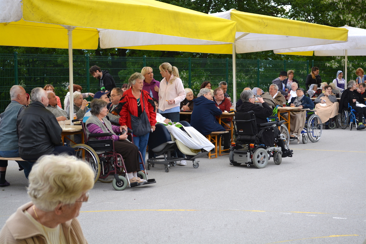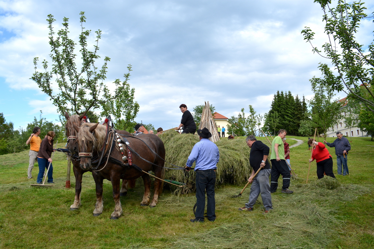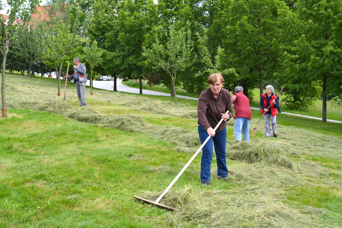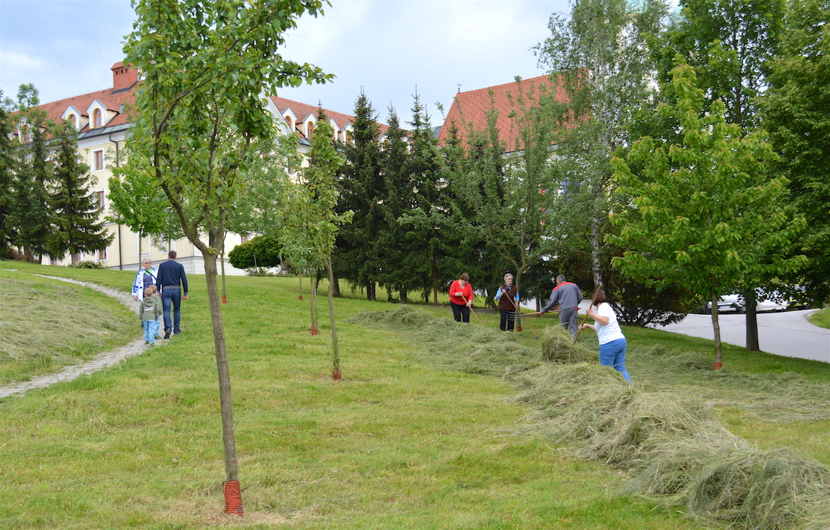 Letos nam je zaigrala Godba na pihala s Svetine, ki je pregnala še zadnje deževne oblake. Zapeli so Ljudski pevci iz Tepanja, Fantje z Jožefovega hriba in zbor zaposlenih. Naj slike predstavijo tudi kmečka opravila, ki smo jih letos obudili in seveda konje, ki so popestrili popoldne. Ob vztrajnem pripravljanju brusketk in primerni kapljici se je vdalo tudi sonce in nam prijetno druženje še primerno ogrelo. Verjamemo, da nam je druženje primerna vzpodbuda, da se bomo trudili do naslednjega druženja biti še bolj pozorni drug do drugega, in se srečevati in poslušati v potrebah.