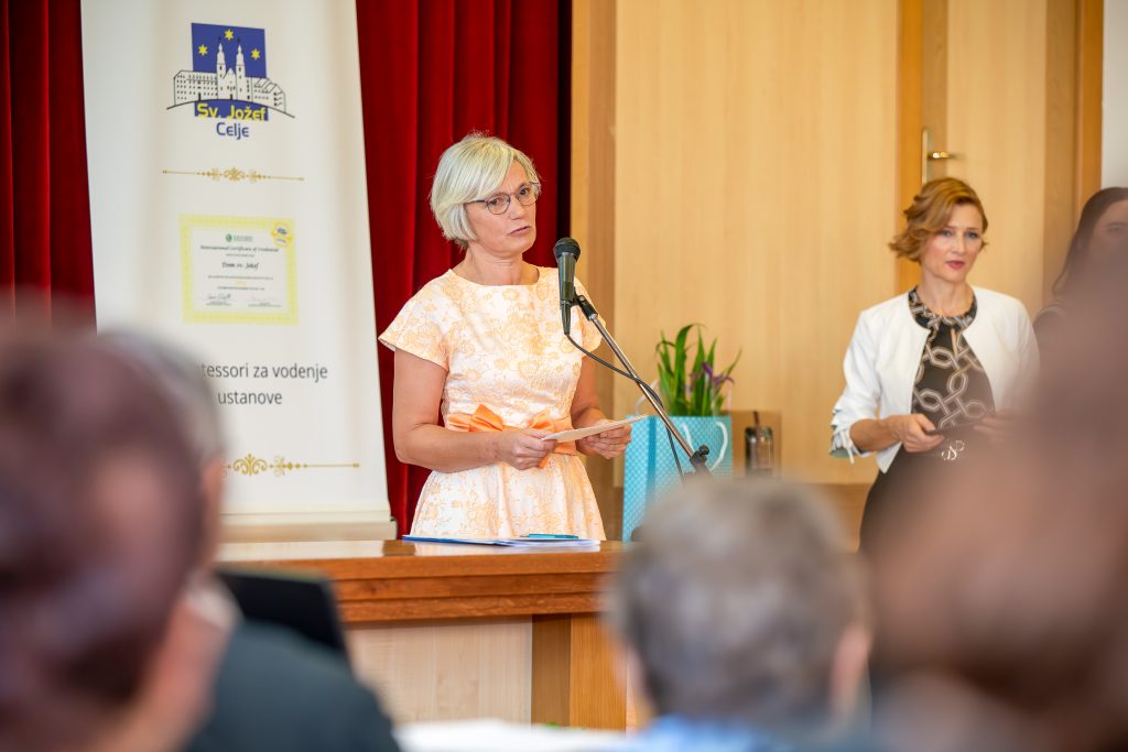 Sara Črepinšek je podelila priznanja petim inštruktoricam metode montessori.