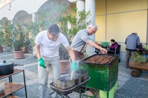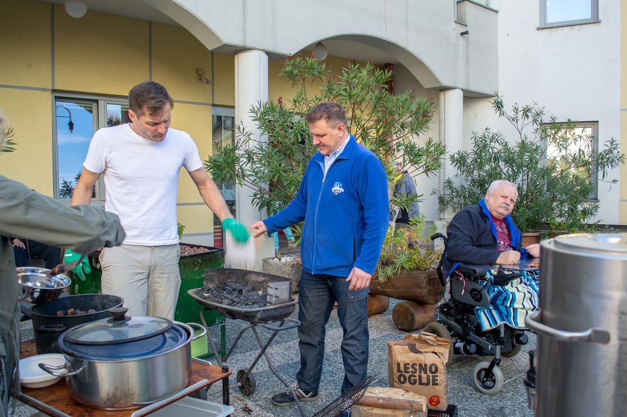 Prijetni jesenski dnevi so tudi stanovalce Doma sv. Jožef izvabili na plano. Čeprav zadnji dnevi niso bili več tako prijazni, se peki kostanja nismo odrekli. Gospod Jože, naš direktor se je vnovič izkazal in pripravil pravo jesensko gurmansko doživetje, ki ga je z glasbenim mehom začinil še harmonikar Janez. Pritegnili smo vsak po svojih močeh in ustvarili še en prijeten spomin, ki nas bo povezoval v hladnejših dnevih.