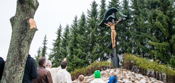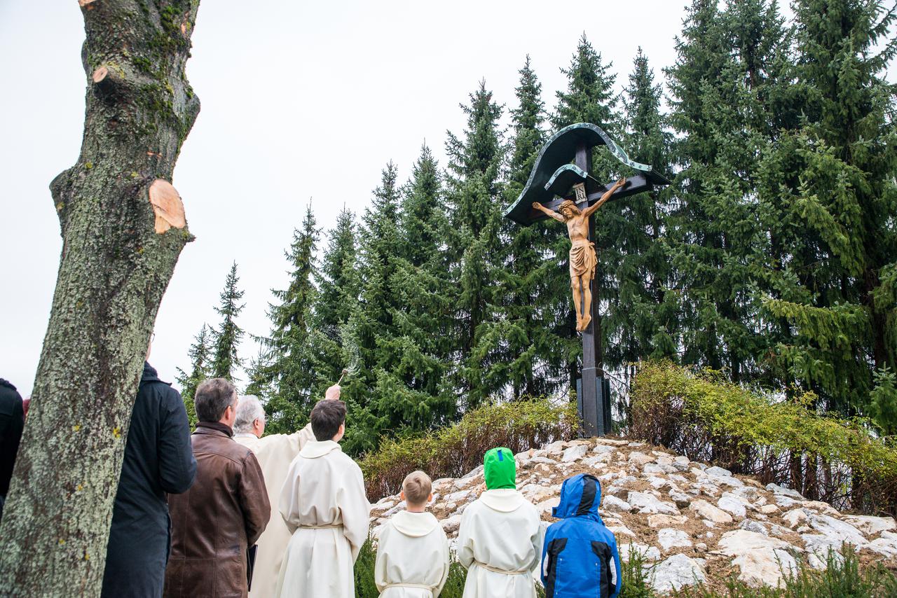na njem ter okolice, ki je preurejena in bo spomladi dobila svojo dokončno obliko, je danes po slovesni sveti maši ob 10 h, ko praznujemo nedeljo Kristusa, kralja vesoljstva. – »Molimo te, Kristus, in te hvalimo – ker si s svojim križem svet odrešil!«
