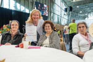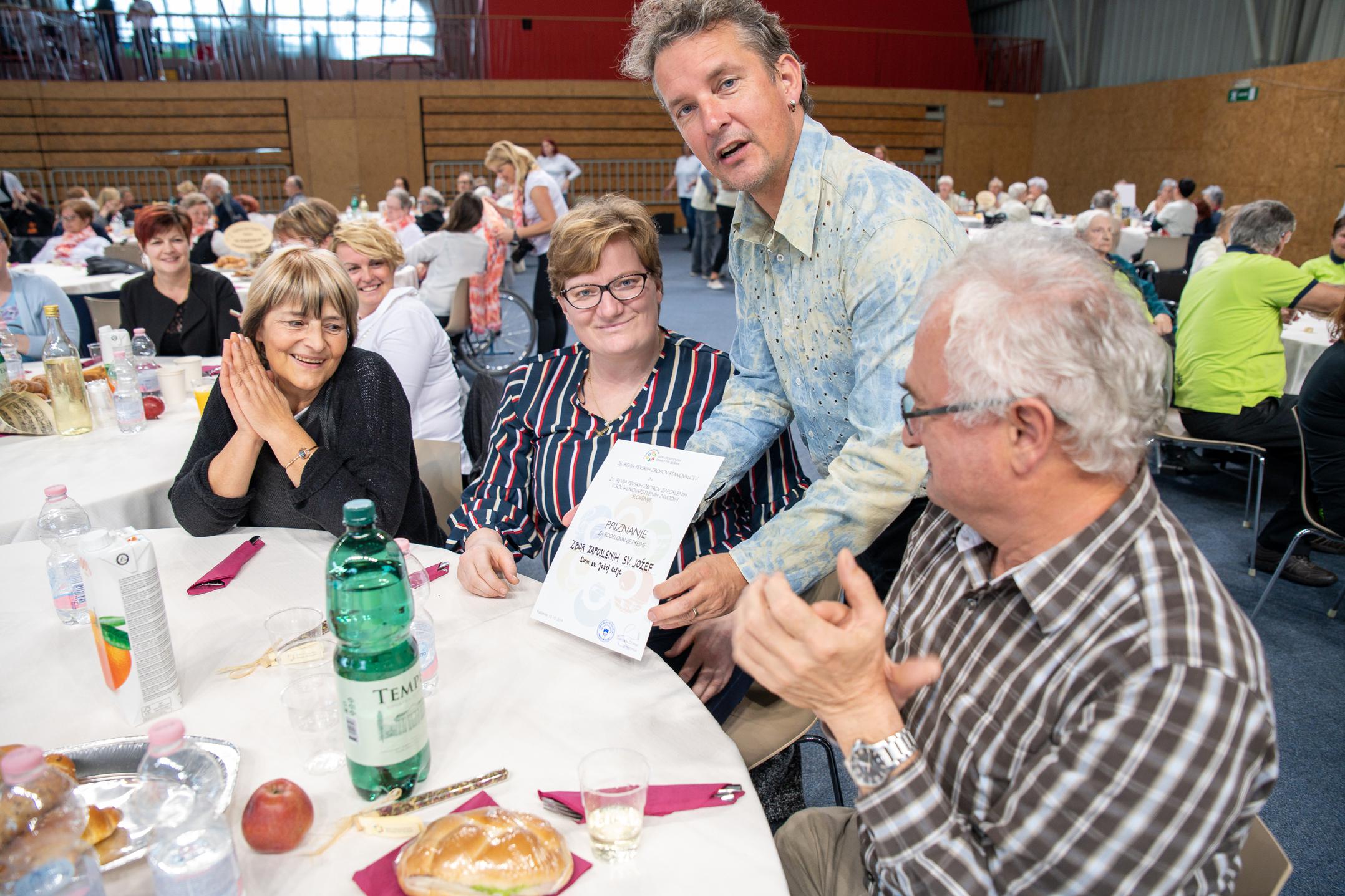 Naši stanovalci so strnili vrste in se podali na tekmovanje tudi za vse tiste člane zbora, ki zaradi bolezni niso mogli z njimi. Pod vodstvom Vladke Blažič, so se pridno in veselo pripravljali na nastop, v Podčetrtku pa odločno in veselo predstavili svojo pesem. A ni ostalo le pri tem! Med redkimi plesnimi pari se je vrtel tudi par iz našega Doma. Dekle, kar ni moglo umiriti srbečih peta, saj sta ji komaj dva plesalca bila kos.