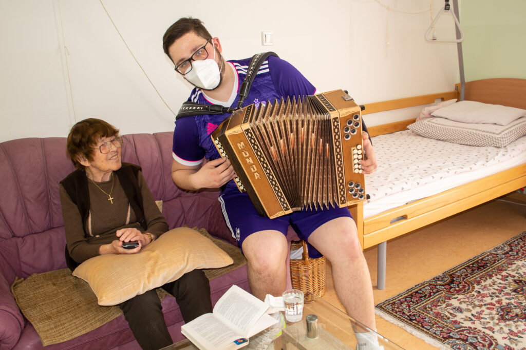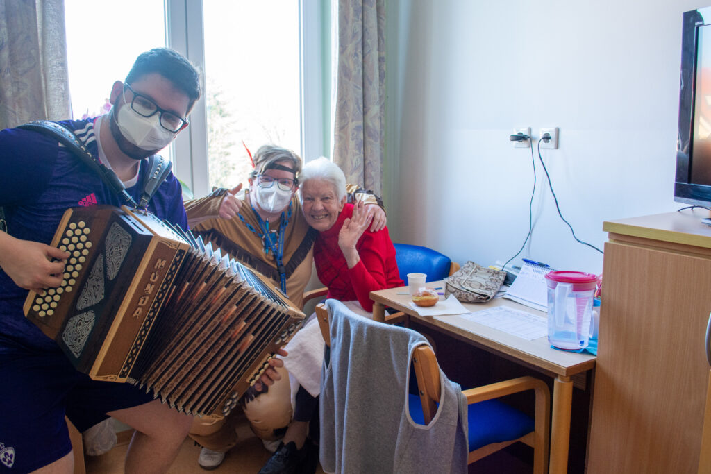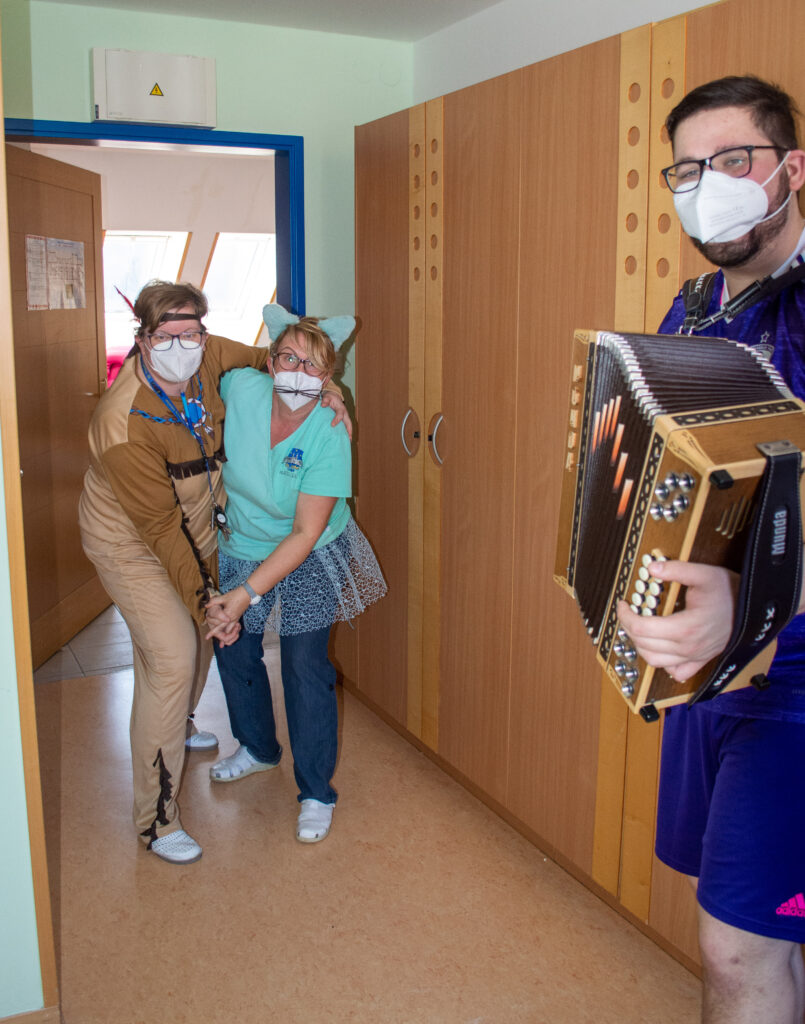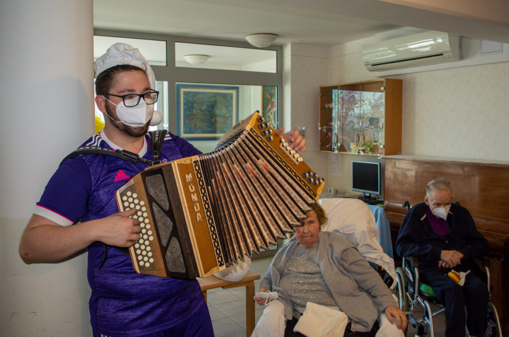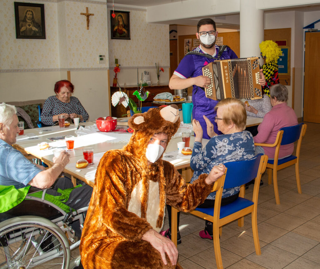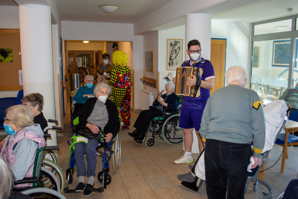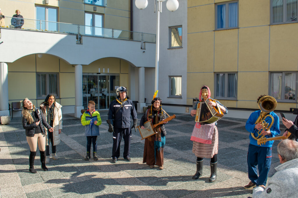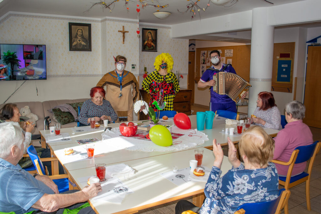 Čeprav tradicionalnega pustovanja tudi letos v Domu sv. Jožef še ni bilo, so pustne šeme ravno prav ponagajale in razveselile. Šeme so podprli še harmonikar in ekipa radia Veseljak. Mastili smo se z odličnimi domačimi krofi in tudi veselo zapeli. Vsem, ki se nam niste mogli pridružiti sporočamo, da preganjamo zimo in vse nelepo. Veselimo se pomladi in upanja, ki ga prinaša za naša vnovična srečanja.