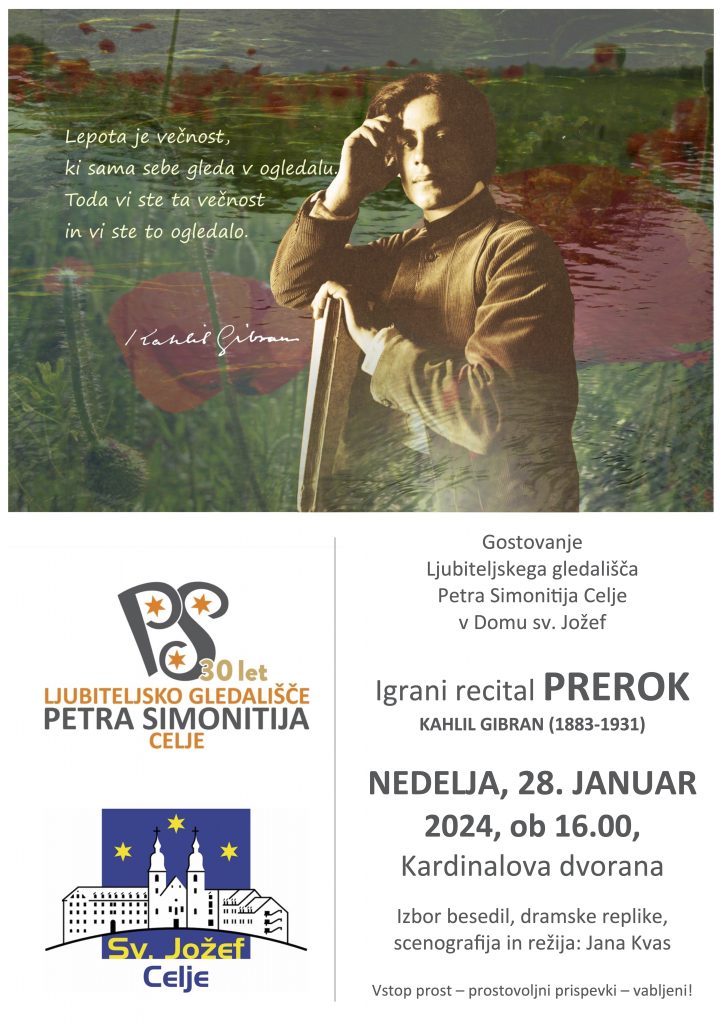 Kahlil Gibran je bil tudi odličen risar in slikar, zato so v imaginarne fotografske prizore, ki spremljajo naš recital, vključena njegova likovna dela.