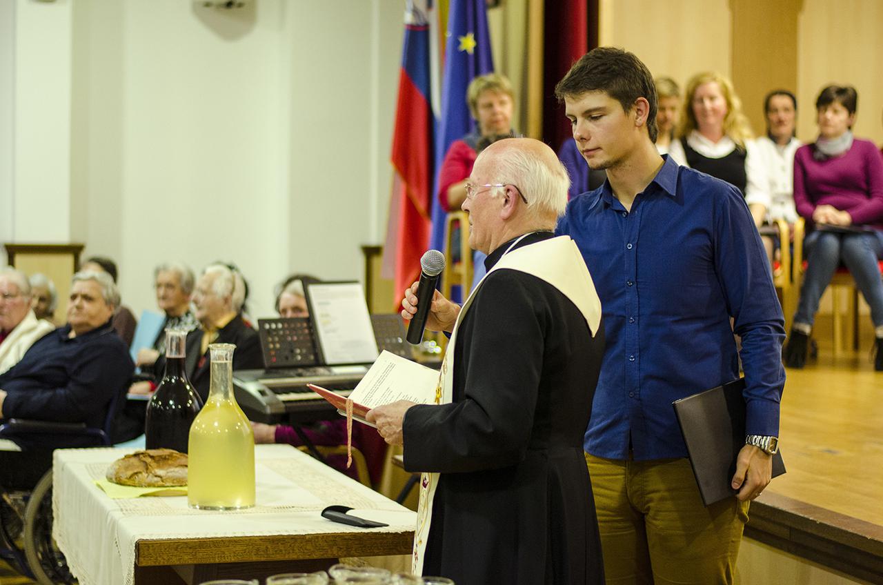 G. Tone Lavrič nam je prebral nekaj misli o vinu iz Sirahove knjige in vino blagoslovil. Zahvaljujoč odlični kapljici iz kleti g. Mirka Planinška, pevcem zborov stanovalcev in zbora zaposlenih Doma sv. Jožef ter članov zasedbe Fantje z Jožefovega hriba, smo prireditev dogodku primerno zaključili.