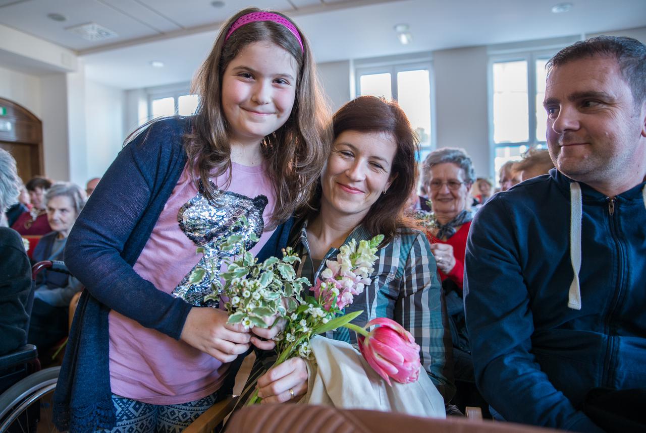 Tudi letos so, v pozdrav in priznanje vsem našim mamam in ženam, pripravili lepo, sproščeno in doživeto popoldne otroci in mladi iz naše župnije ter pevci župnijskega zbora, otroškega zbora in zbora stanovalcev Doma. Za še večjo mero dobre volje pa sta s svojimi korajžnimi nastopi poskrbela Matevž Gubenšek na klavirju in Vid Krt skupaj z očetom Primožem. Da pa niso izostale tudi instrumentaliske, so nastopile Mila, Meta in Izabela v violinskem triu. Dan smo zaključili z nasmehom na obrazu, v upanju, da se naslednje leto, ob tem času, zopet srečamo.