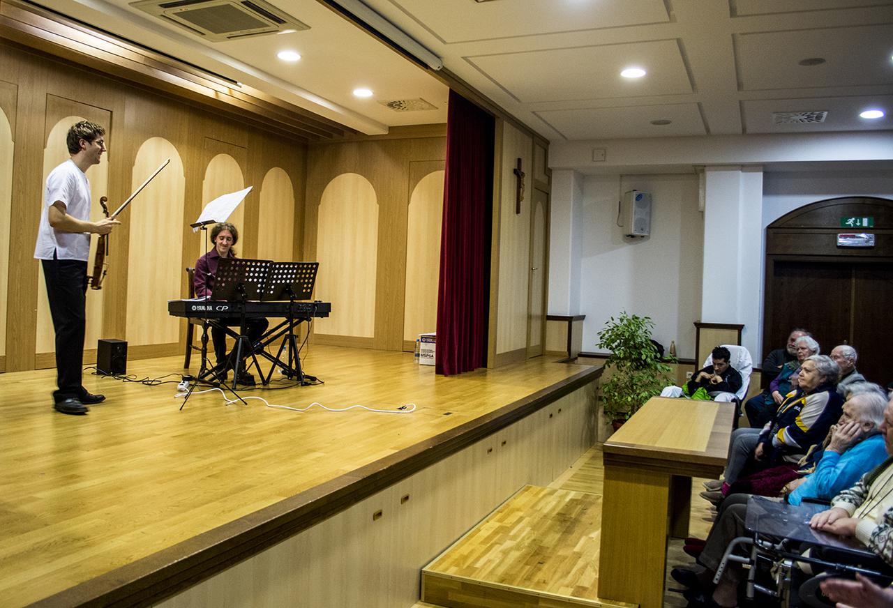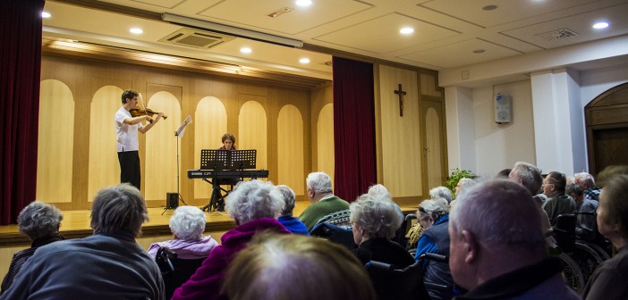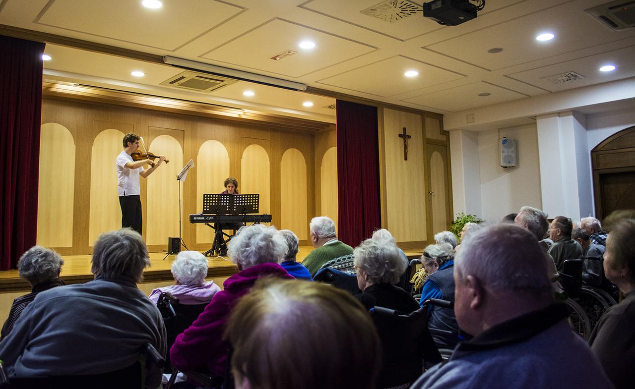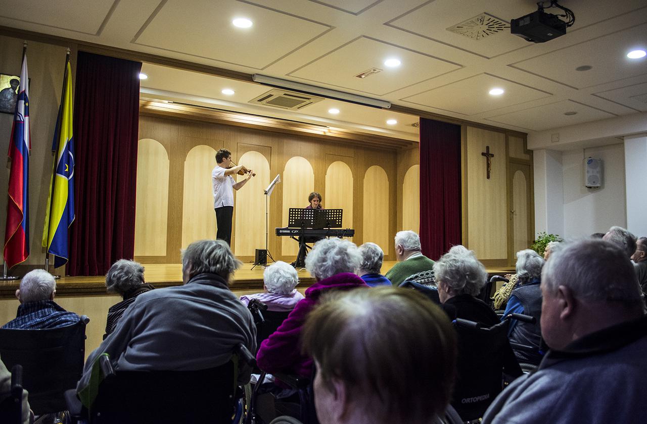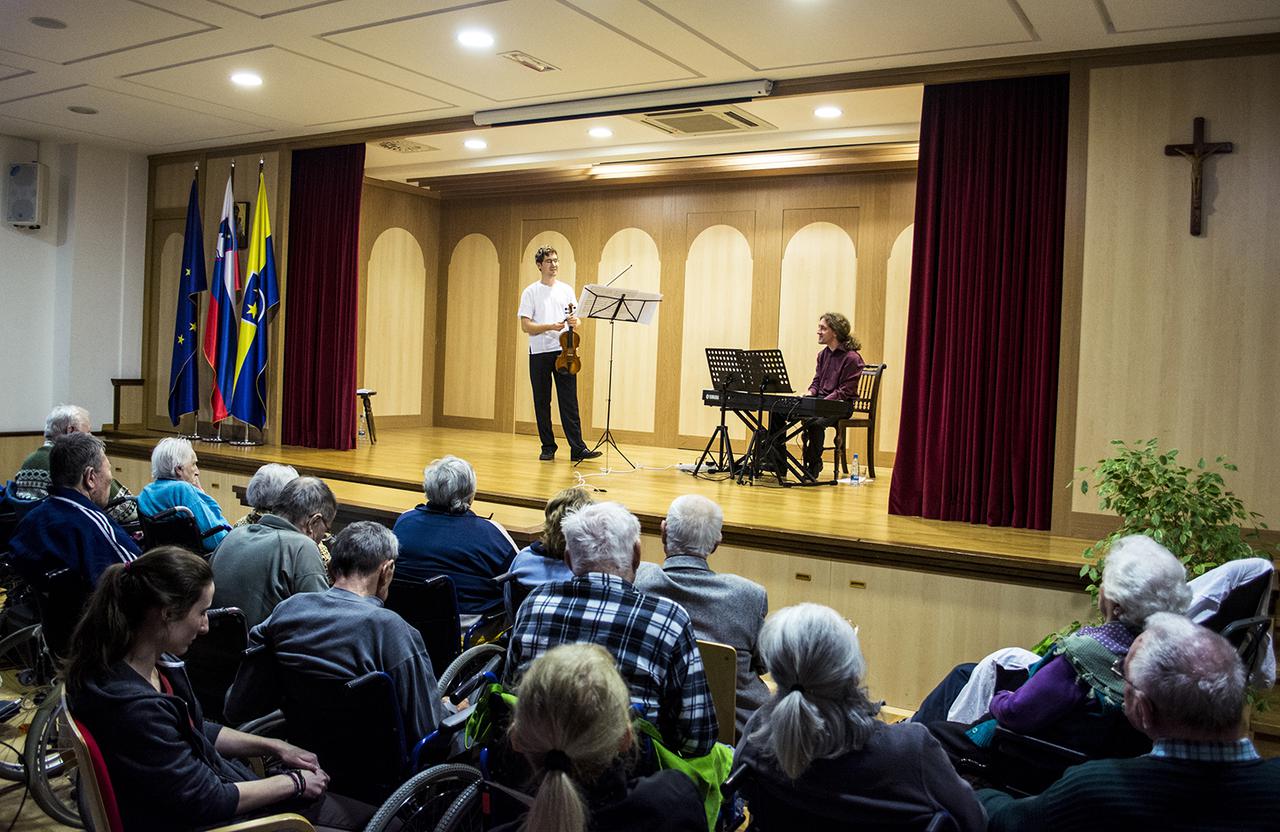 V našem Domu seveda ni tako. Ne prirejamo bučnih zabav, smo pa v veselem pričakovanju, na to nas spominjajo različne stvari. Adventni venčki, petkovo miklavževanje, različna druženja kot priprava na praznike in tudi miklavžev koncert. Sobotna gosta, akademska glasbenika in oba Celjana, pianist Tilen Draksler in pobudnik večera, violinist Andrej Gubenšek, sta za nas pripravila nekaj glasbenih del, s katerimi sta nam popestrila dan in v nas zbudila hrepenenje po lepšem in drugačnem. Glasba nas vedno odpre, naredi nedorečene in v nas utrdi občutek za upanje, za pričakovanje in to je lepo. Dokler upamo, dokler pričakujemo, res živimo, in močnejše kot je oboje, toliko več je življenja v nas. Prepustili smo se občutkom in dobri volji naših glasbenikov ter njihovemu zgledu.