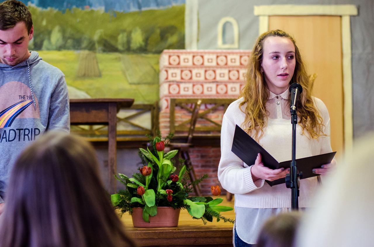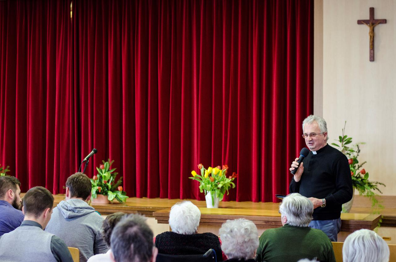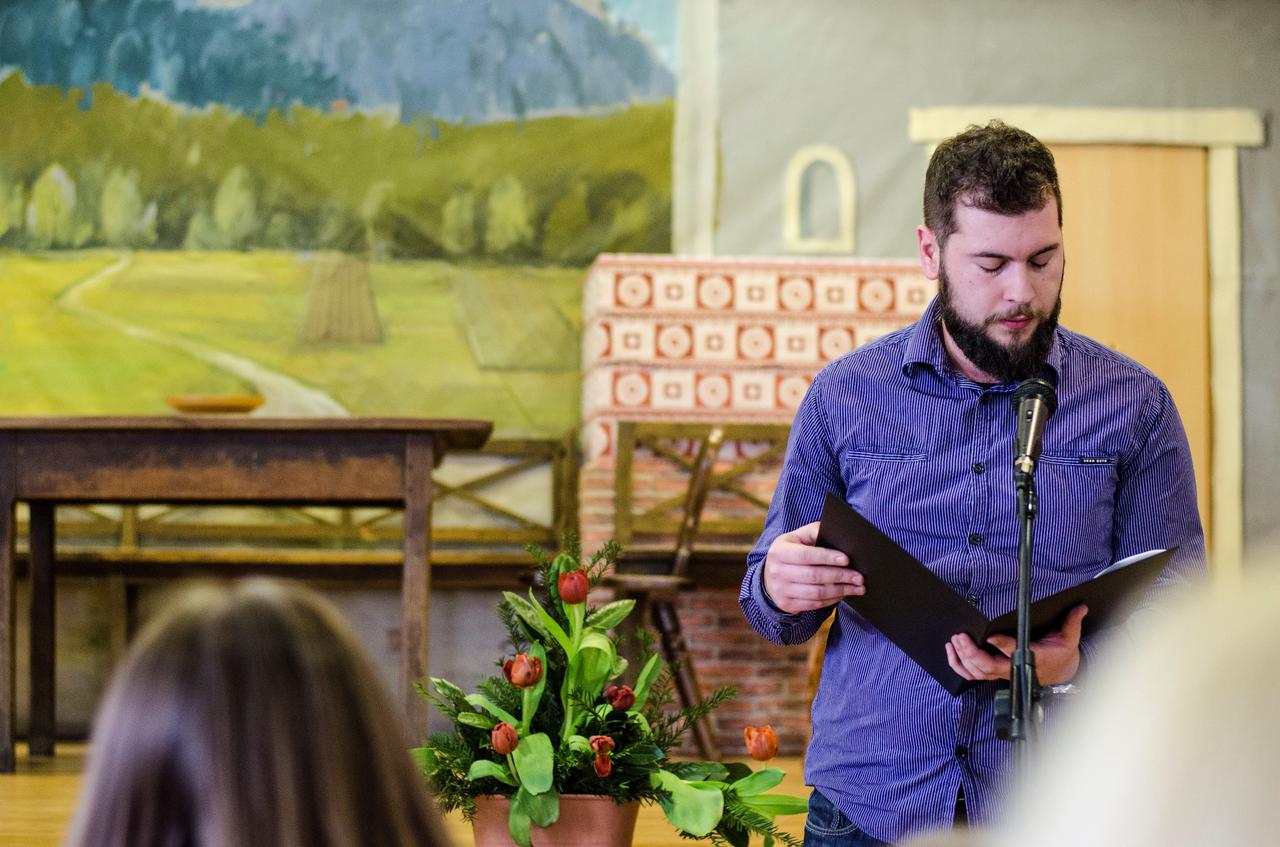 Ta odlično odigrani odlomek Slomškovega prizora iz Drobtinic (1861) v priredbi Franceta Šmona in režiji Jožeta Planinška so nam na proslavi ob materinskem dnevu v nedeljo, 22. marca 2015, v Domu sv. Jožefa uprizorili naši veroučenci. »Kdor se od matere moliti ne nauči, ne bo vse žive dni prav molil,« nas opozarja Slomšek. Molitev nas uči tudi ponižnosti in sprejemanja Božje volje, vliva nam zaupanje v Marijino varstvo, daje nam čutiti bližino njene materinske ljubezni. Gotovo je prav Marija največji zgled ponižnosti s svojim »Dekla sem Gospodova, zgodi se mi po tvoji besedi.«
