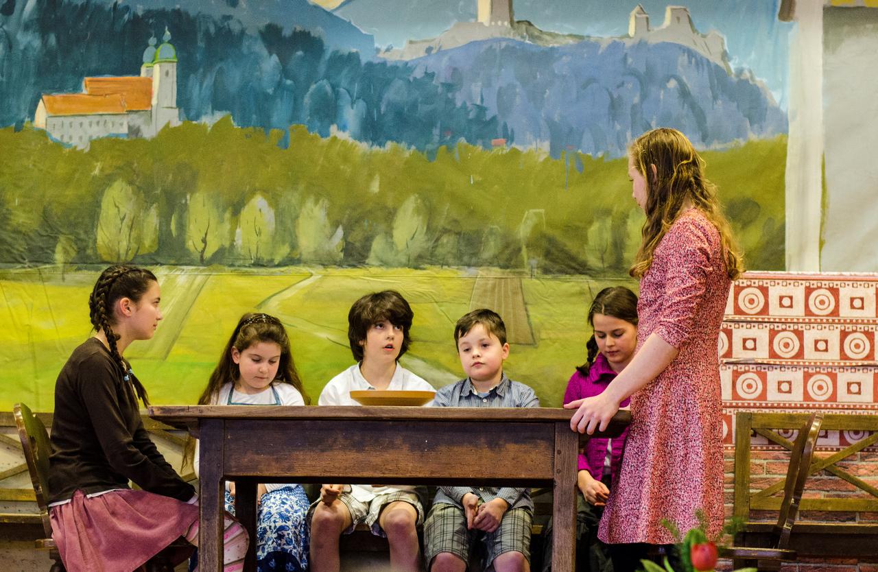 Kmečka izba. Otroci z materjo okrog mize pri večerji. Pravkar so odložili žlice, s katerimi so zajemali iz skupne sklede, in mati jih nagovori: »No, ljubi moji, kako ste se pretečeni teden nosili, kako ste se kaj zadržali?«