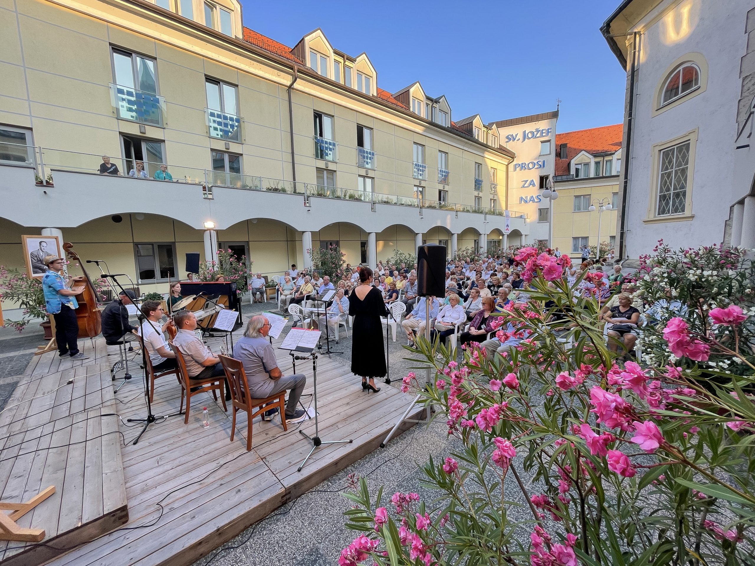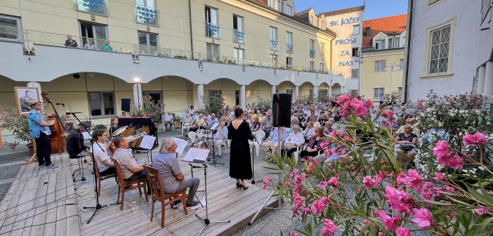 nas čaka tudi nocoj. Z nami bo šansonjerka Jana Kvas, ki nam bo ob spremljavi Matjaža Krušiča, Karla Kvasa in Mira Ulrycha prepevala svoje in originalne francoske šansone. Lepo povabljeni spet v naš atrij, nocoj, zadnjega avgusta ob 19. uri. V primeru dežja bo koncert v Kardinalovi dvorani. Vstop prost, dobrodošli pa prostovoljni prispevki.