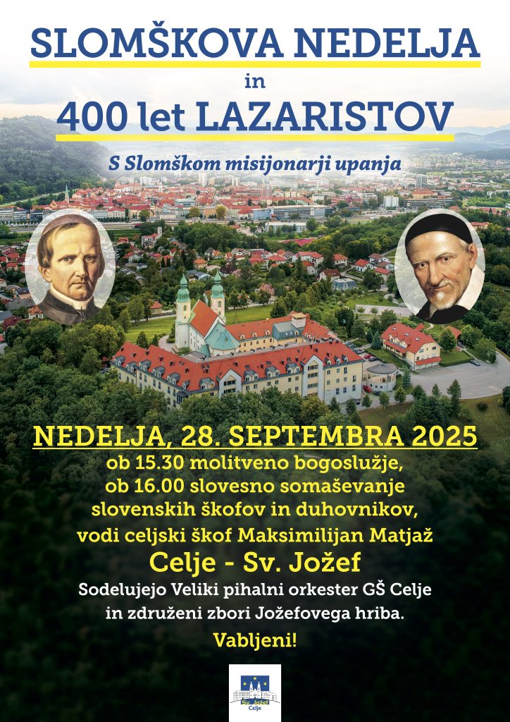 za naš hrib, župnijo in kraj je praznovanje Slomškove nedelje in štiristoletnice Misijonske družbe – lazaristov, ki se ga veselimo v nedeljo 28. septembra. Tu sta se namreč duhovno srečala, blaženi škof Slomšek in sveti Vincencij Pavelski, dva velika duhova, eden iz Francije v sedemnajstem stoletju in drugi od tu v devetnajstem stoletju. Oba, misijonsko prežarjena, puščata v naši krajevni Cerkvi in deželi še danes po njunih ustanovah močan pečat, ki želimo da gre tudi v prihodnost. To je temeljni namen praznovanja. Razveselitev in hvaležnost nad tem, da smo po njunih vzornih nadaljevalcih pred nami lahko tudi mi danes deležni njune dediščine in prošnja, da bi jo vredno poživljali in gradili v prihodnost. Praznovanje, ki je hvaležnost in priporočilo ter prošnja za v prihodnje. Le strmimo lahko, ko ob tej priložnosti več razmišljamo o vsem, kar sta nam dala in morda malo trepečemo pred tem, kaj bo tisto kar bomo mi iz njune dediščine pustili naslednjim rodovom. A prav zato praznujemo in poživljamo zavest, da sta še vedno z nami s svojo priprošnjo in to nam je tolažba ter upanje, da tudi naš, morda bolj skromen trud pod njuno mogočno priprošnjo in varstvom zaročencev, Marije in Jožefa ne bo zaman. Zanimivo, naš hrib ima v sebi nekaj srečanjskega. V oltarju je upodobljeno srečanje Jožefa in Marije z njuno zaroko. Duhovna zapuščina Vincencija in konkretno apostolsko delo Slomška sta se tudi tukaj našla. Dogajanje na Hribu danes pa je tako ali tako eno samo srečevanje ljudi, misli, dejavnosti in želimo, da tudi domačnosti. V Betanijo združene tri hiše, Marijina, Martina in Lazarjeva nas k temu vabijo in upamo, da tudi v tem potrjujejo. Praznik pa naj k temu pripomore. Zato vabljeni k duhovni pripravi na dogodek in sicer v petek, na predvečer godu sv. Vincencija, kakor tudi v soboto zvečer in nedeljo dopoldne. Tako je tudi oblikovana posebna tridnevnica, ki jo bomo pri nas imeti na navedene dni. V nedeljo popoldne, ob 15.30 pa bo prav, da se zberemo v čim večjem številu. Lepo naprošeni, da k temu spodbudite še druge, imamo za kaj biti hvaležni, še bolj pa imamo za kaj prositi. Res povabljeni, da to storimo skupaj in na slovesen način z molitvijo, mašo petjem, igranjem in sodelovanjem, kjer bo potrebno. Dogodek je milost in priznanje, pustimo se mu nagovoriti.