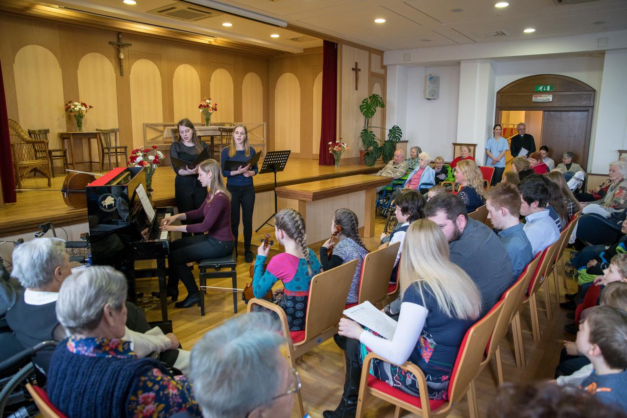 Na praznik Gospodovega oznanjenja smo tudi letos, združujoč glasove mladih in mladih po srcu, pripravili proslavo, namenjeno zahvali za materinstvo in tudi očetovstvo. Ganila je iskrena ustvarjalnost v recitalu in glasbenih nastopih naših najmlajših, pesem iz fantovskih in dekliških grl, družinskega nastopa Krtovih, vse do zbora stanovalcev in zaključnega poklona materam, ženam, ki so prejele cvet pozornosti. Beseda težko izrazi občutja, ki so prevevala Kardinalovo dvorano, zato vabljeni k ogledu galerije.