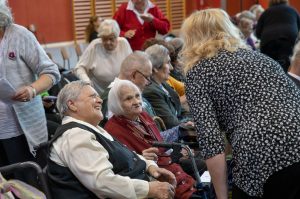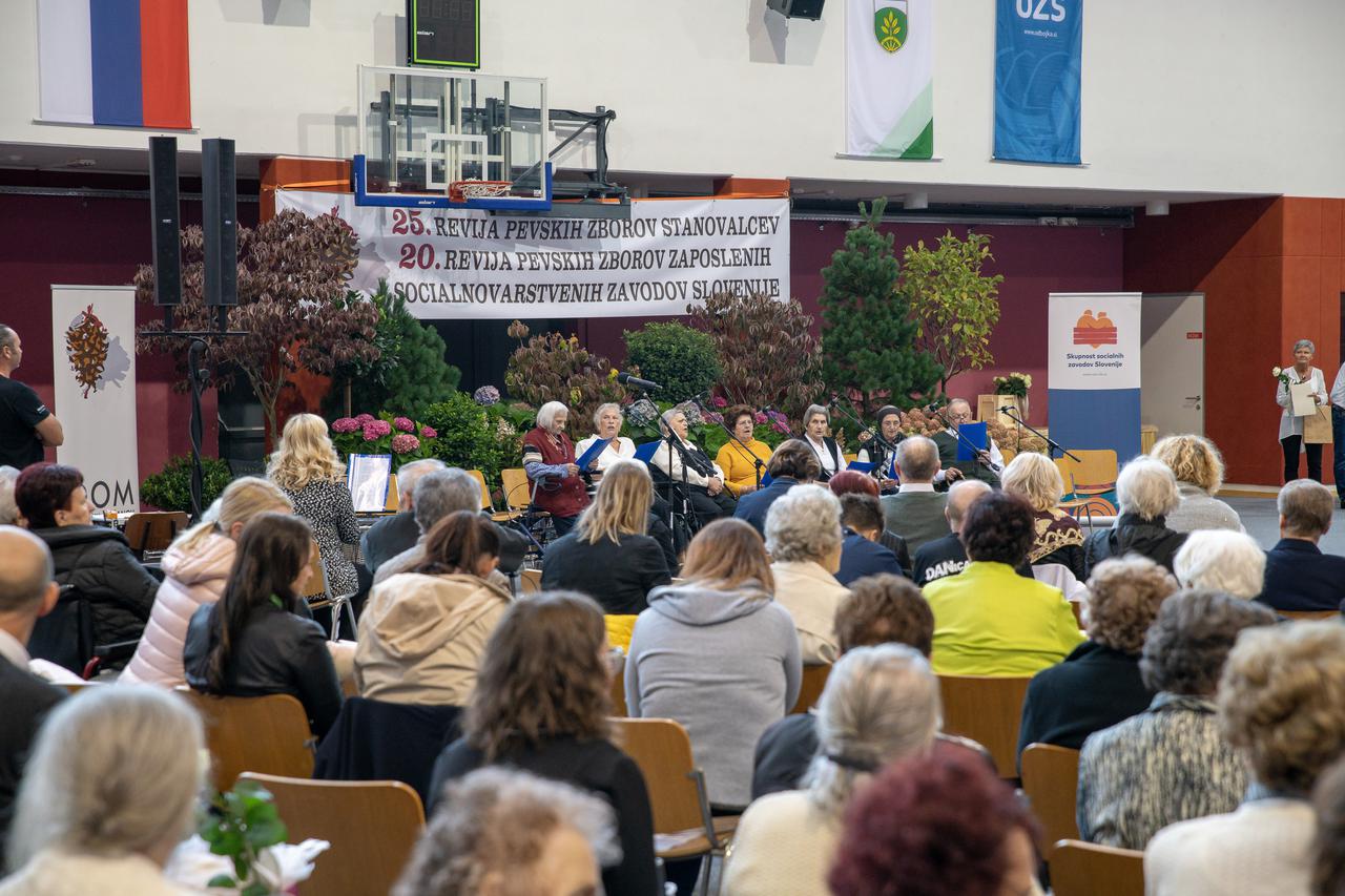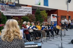 Sreda, 3. oktobra 2018, je bila za pevce zborov domov za starejše poseben dan. V Hočah se je odvijala 25. revija pevskih zborov stanovalcev in 20. revija pevskih zborov zaposlenih. Vabilu Doma starejših občanov Tezno smo se z obema zboroma odzvali tudi v Domu sv. Jožef. Sončen dan je pripomogel k odličnemu vzdušju že v Celju. Med 21 zbori stanovalcev se je s pesmijo Tihi kraj pod vodstvom Vladke Blažič predstavil naš zbor stanovalcev. Zbor zaposlenih, ki ga je vodil Primož Krt je imel 5 konkurentov, predstavil pa je pesmi Siyahamba in Zemlja pleše. Vznemirjenju in tremi navkljub, sta se oba zbora več kot odlično predstavila. Žal ni bilo tekmovanja za najboljšega direktorja, kjer bi gotovo zmagal naš g. Jože. Čeprav tokrat ni zapel z nami, nas je izjemno podprl na reviji, a še pomembnejša je njegova podpora, ki smo je deležni pri rednem delu. Ne vemo če in kdaj še bomo sodelovali na reviji, vemo pa, da bomo z veseljem in hvaležnostjo zapeli kadarkoli doma.