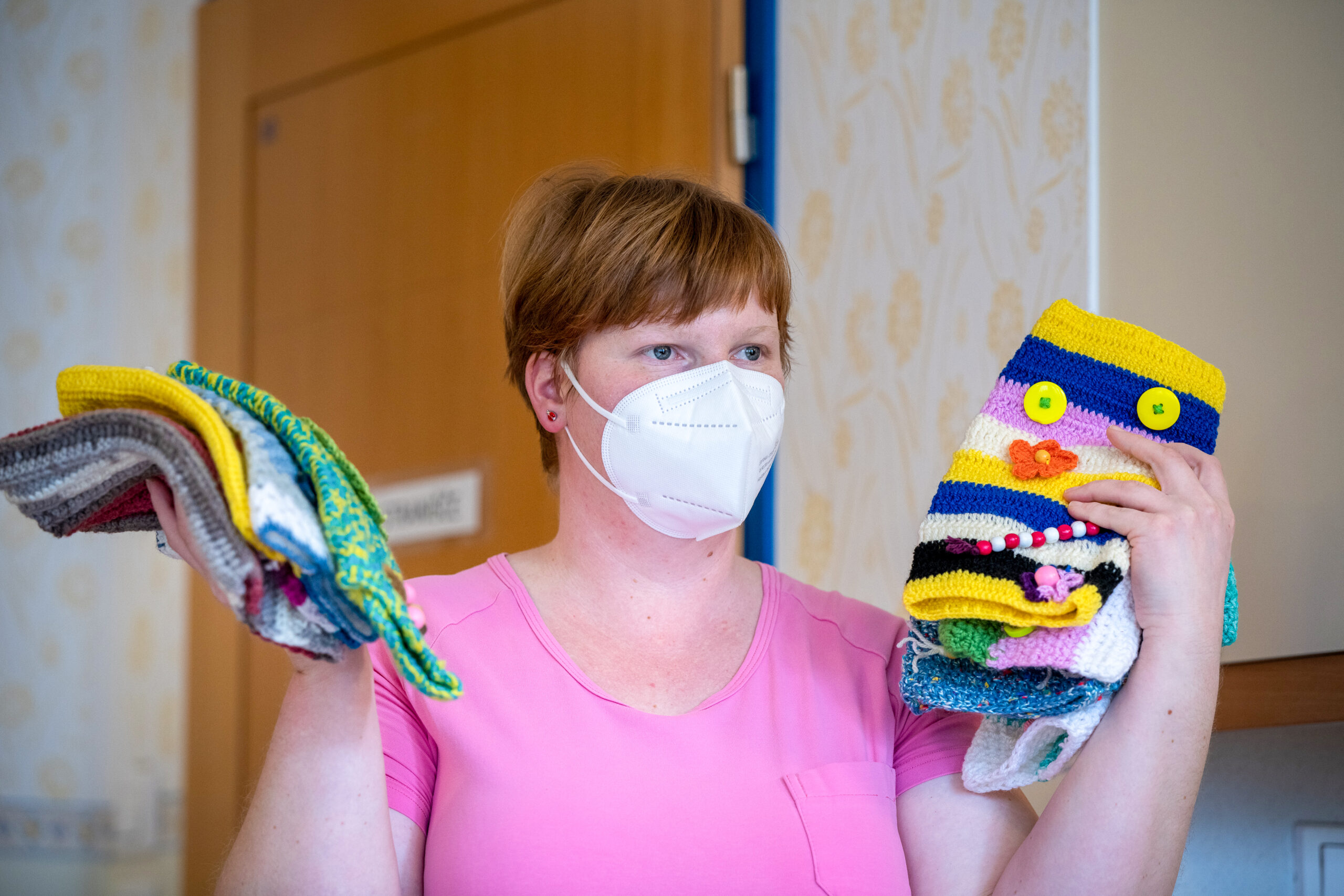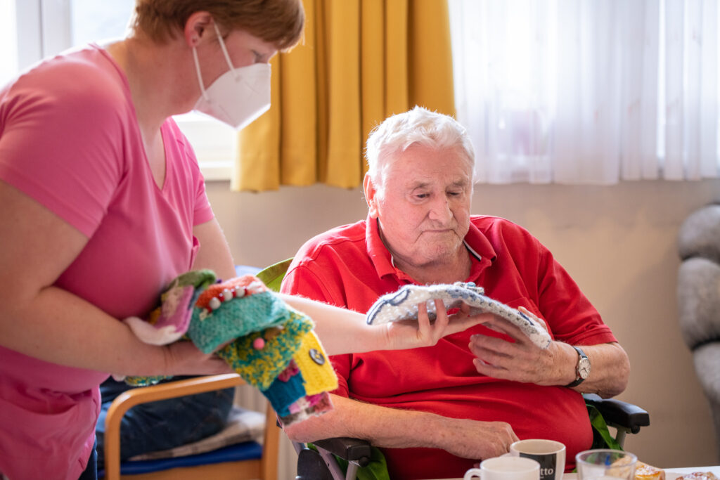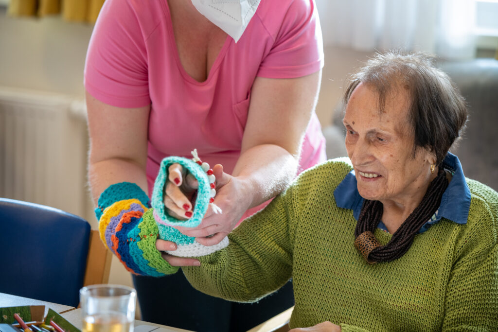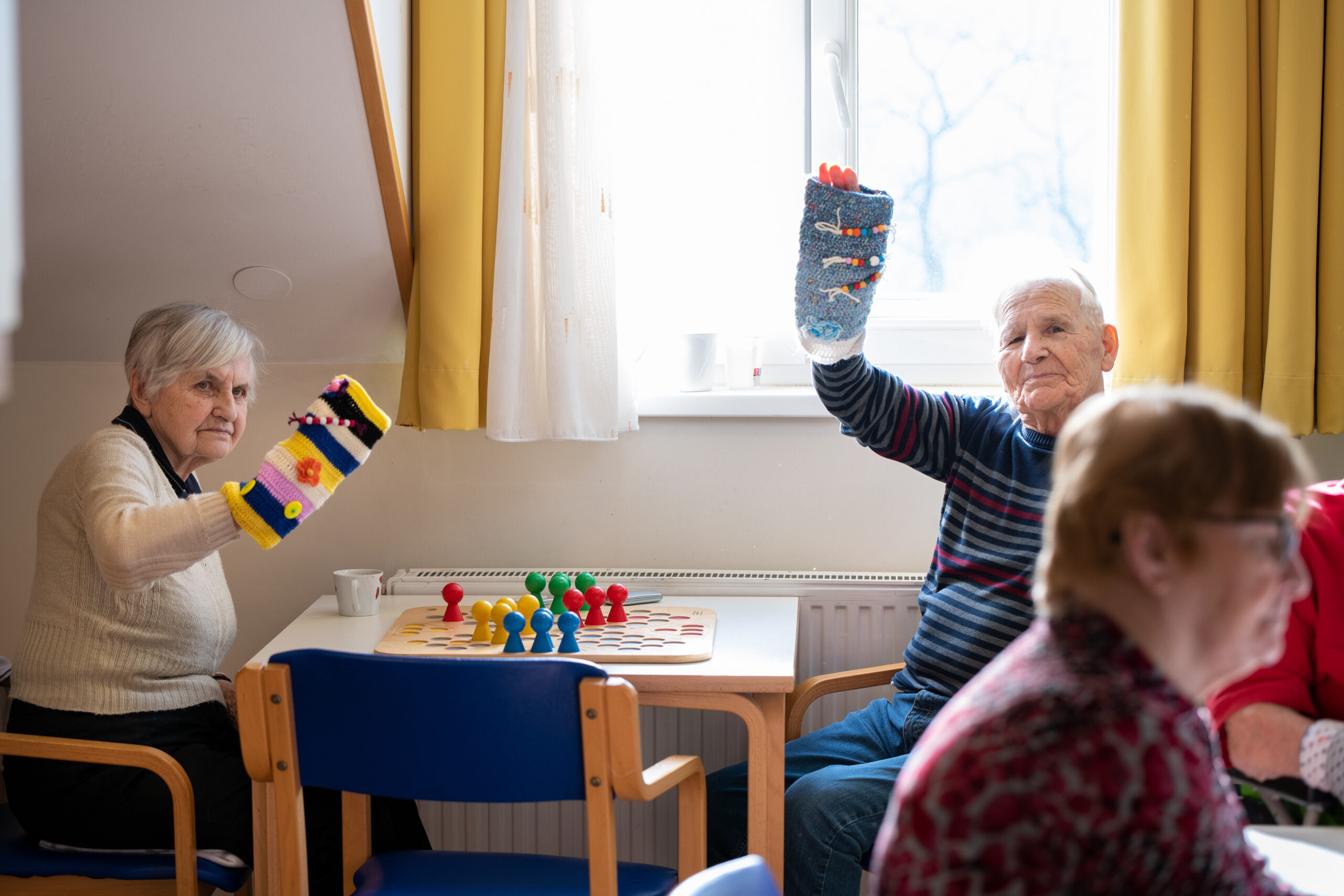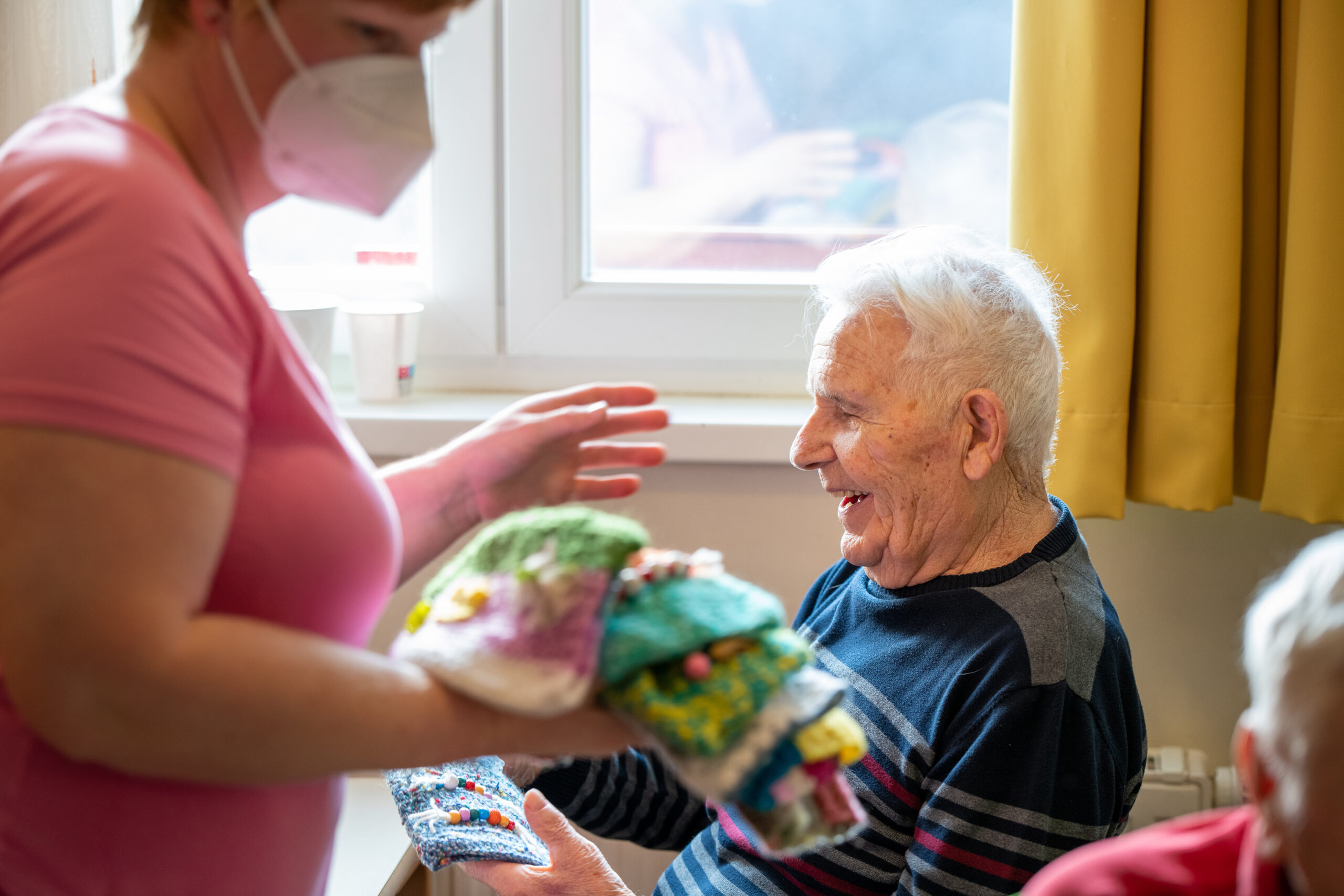 Naši stanovalci so se takole razveselili »Rokavčkov pomagavčkov«, ki so jih z dobro voljo, veliko mero ljubezni in z upanjem, da bo osebi, ki ga bo dobila v dar, polepšal dan, izdelali udeleženci programa socialna aktivacija Zasavja-Hrastnik, ki se izvaja pod okriljem JZ Socio Celje, z mentoricama Anjo in Etko.