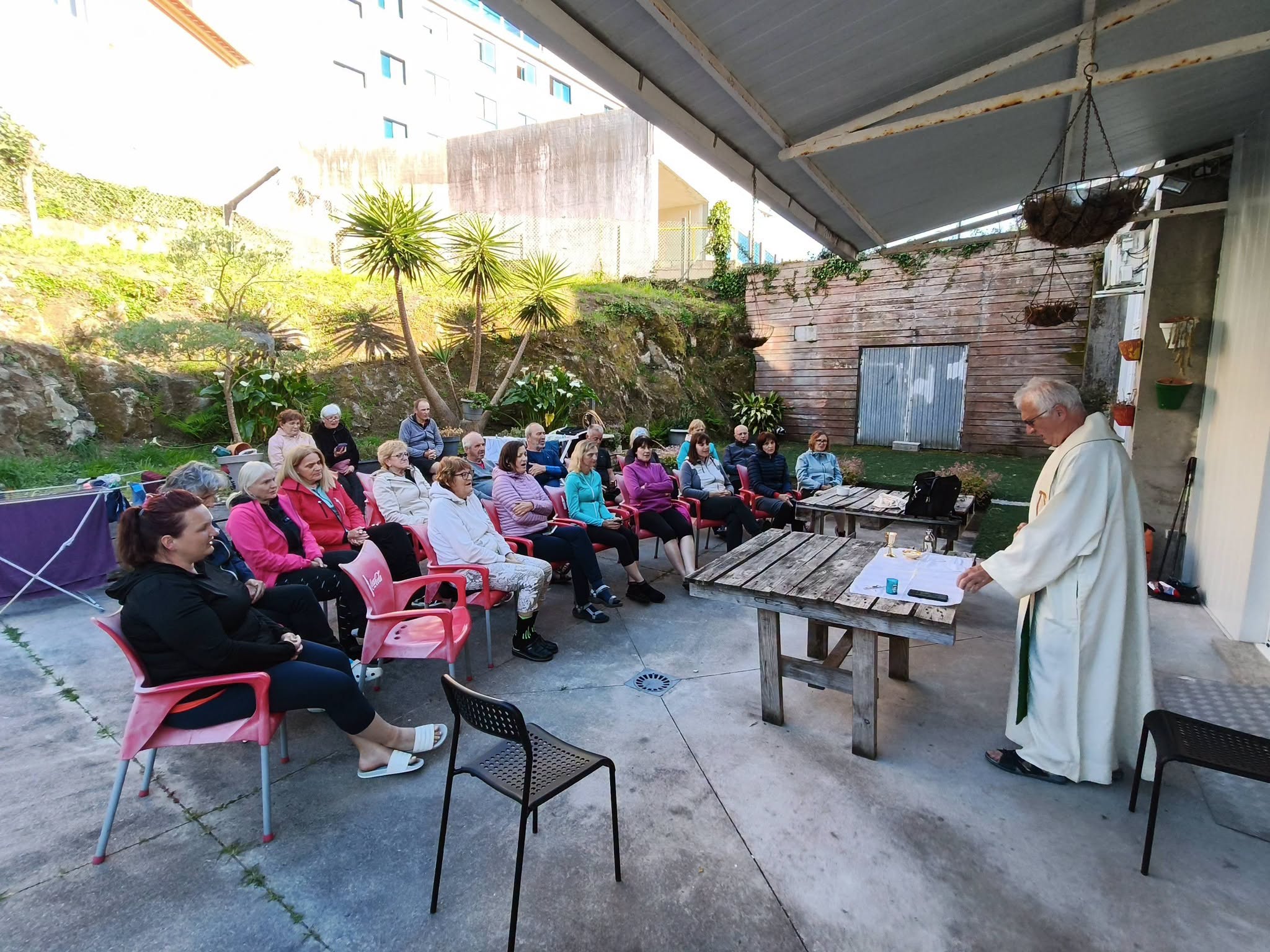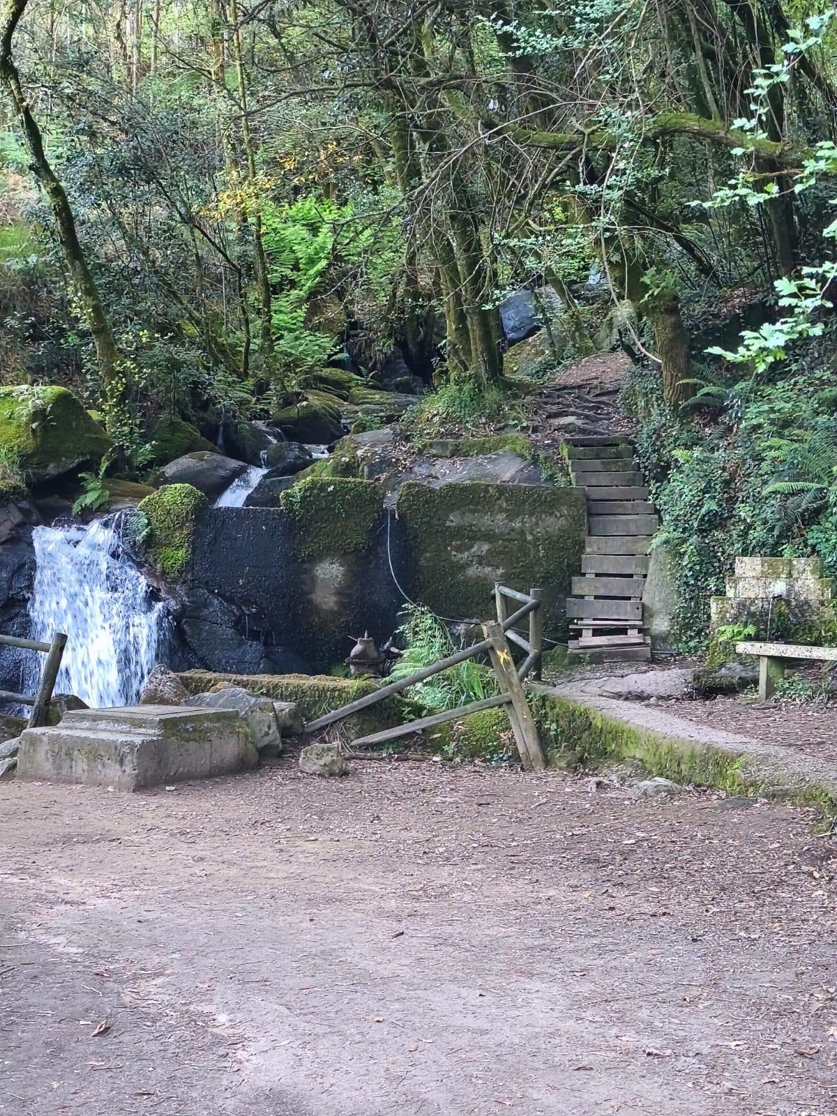 Mesto Vigo je bilo kmalu za nami. Romanje smo nadaljevali po lepi gozdni poti. Na levi strani nas je daleč pod nami ves čas spremljalo morje, v daljavi smo lahko opazovali mogočen most. Na poti nas je spremljalo ptičje petje in žuborenje vode.