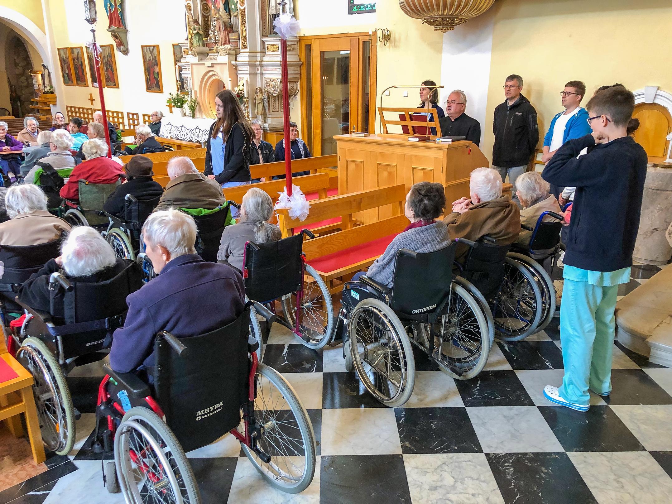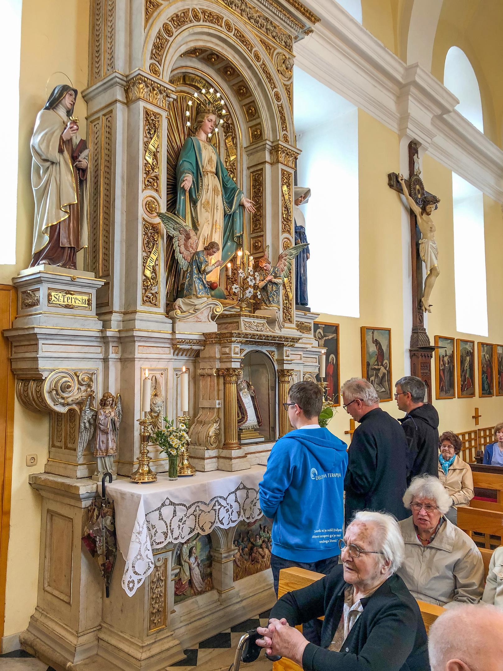 Maj ni bil radodaren s soncem, a nam ga je skromen žarek danes uspelo ujeti. Okoli 10. ure, ravno ko smo se odpravljali k šmarnicam, se je vreme umirilo. Izkušnja preteklih dni je bila preveč globoka, zato smo to pobožnost raje opravili v cerkvi. Spomnili smo se blaženega Lojzeta Grozdeta, saj se sinočnjega recitala niso mogli udeležiti vsi stanovalci. Nadaljevali s petimi litanijami in zaključili s petjem pesmi, posvečenih Božji Materi Mariji. Naj nas spremlja na naših poteh!