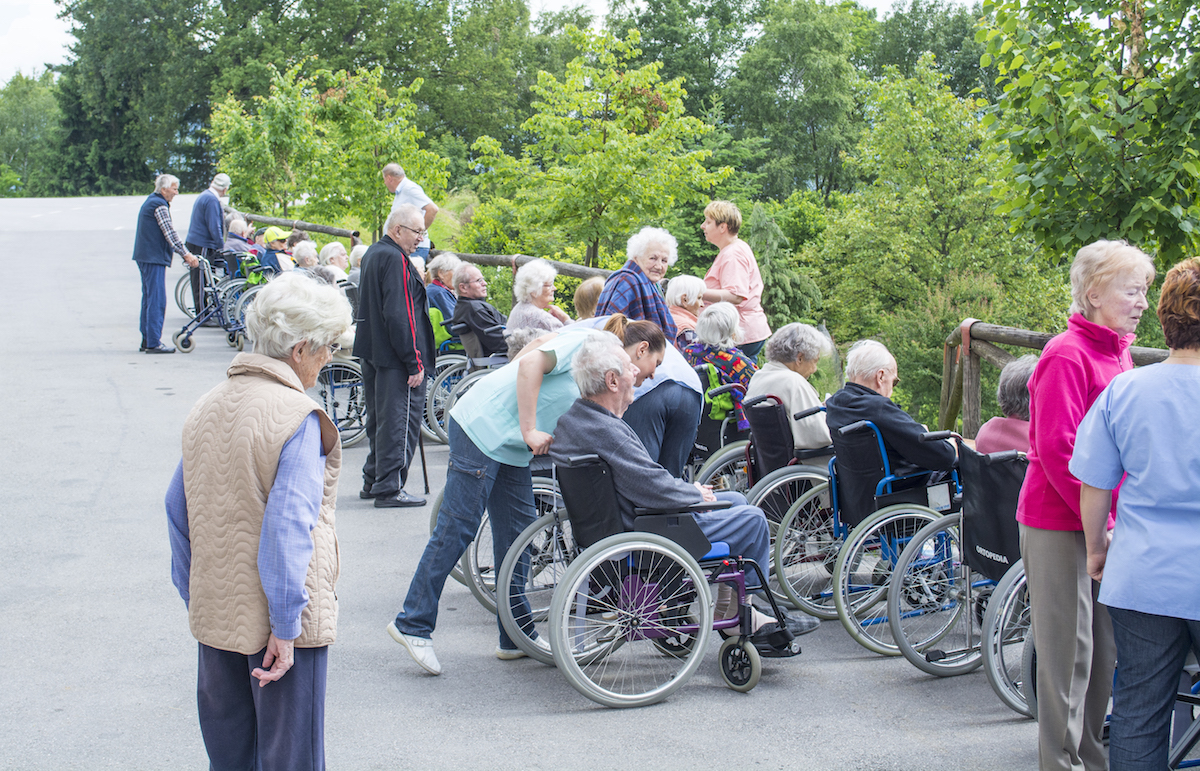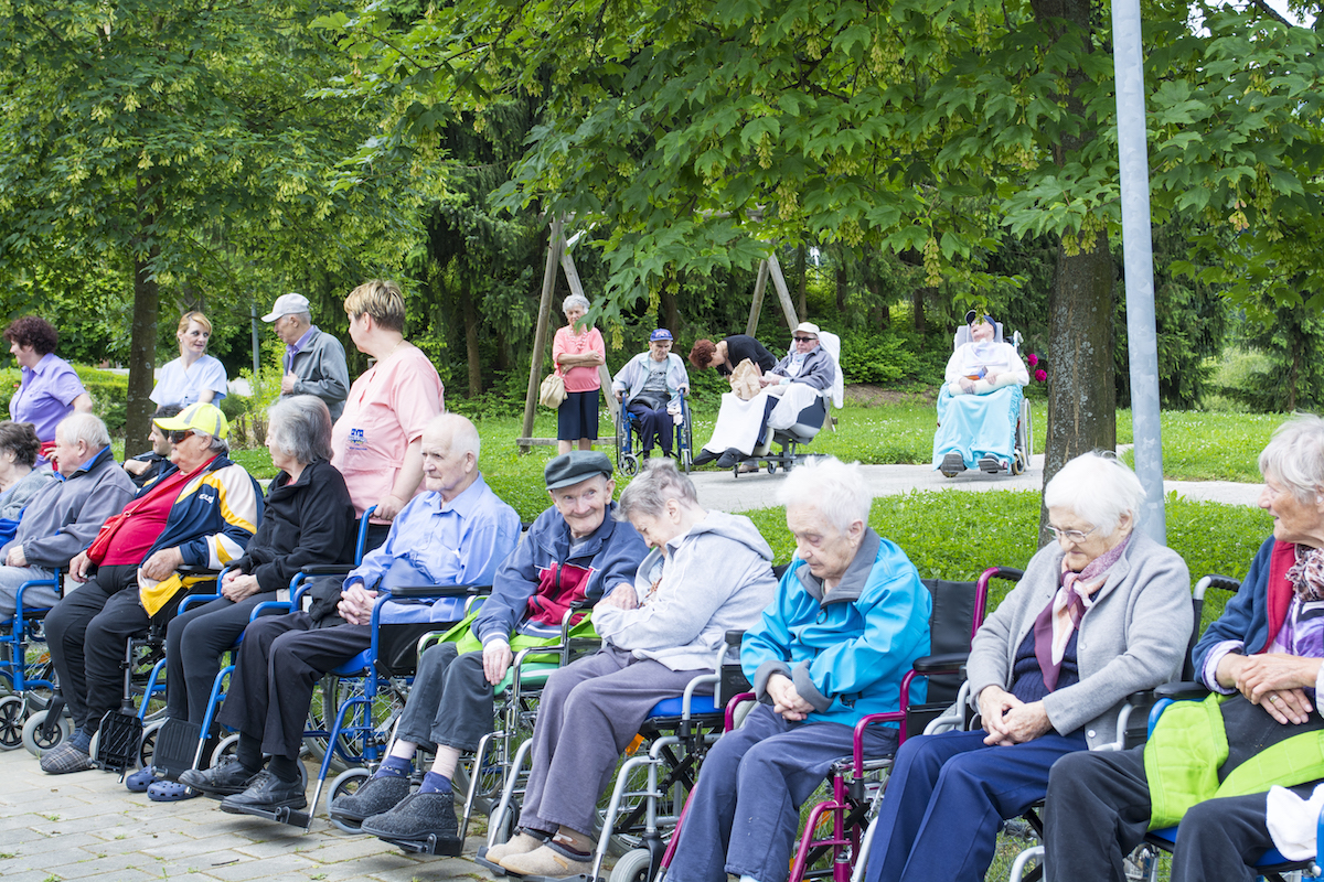 Pomladno zeleno drevje nas je že od sredine aprila neustavljivo vabilo ven, na svež zrak, pod sonce. Dolgo smo gledali v nebo, da smo našli pravi dan. V četrtek, 2.6. smo se s stanovalci na vozičkih in spremljevalci vendarle odpravili ven. Mimo kapele, po spodnji poti ob telovadnici do paviljona in nato pred Lazarjevo hišo, kjer so nas že čakale neobrane domače češnje. Kako dobre so bile! In vedno jih je premalo. Nato pa presenečenje. Sara je s seboj prinesla milne mehurčke. Kaj naj si takle starejši človek misli o tem? Prestar, preresen? Otročje ali otroško lepo? Milni mehurčki so se čudovito lesketali v soncu, lepi spomini na otroška leta pa so zaplavali nad njimi. Ob kavi in pecivu nam je čas prehitro minil, zato smo rekli, da še pojdemo. Kmalu.