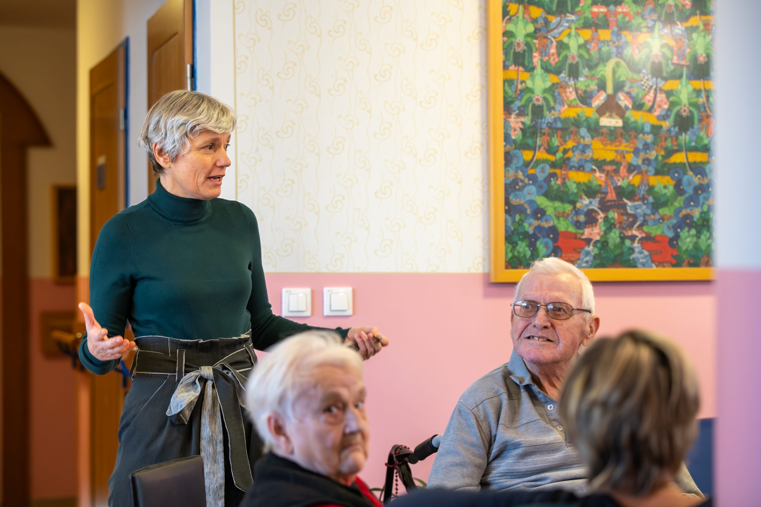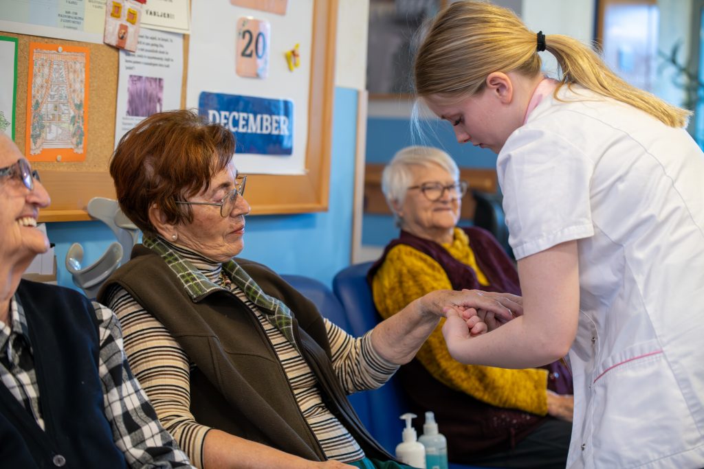 Ob druženju v Emini vasi, kjer so se krepile družinske vezi, je potekalo nekoliko drugačno druženje v Vincencijevi vasi. Lahko bi rekli, da je bilo medgeneracijsko, a je bilo več kot to. Hvaležno sprejemamo pripravljenost celjske Srednje zdravstvene in kozmetične šole, ki v našem Domu izvaja del svojega programa. Pod budnim očesom mentoric dijakinje in dijaki prinašajo v Dom mladostni utrip. Del pridobljenega znanja delijo z našimi stanovalci. Želimo si, da bi bila druženja tudi dijakinjam in dijakom v vzpodbudo za vztrajanje v poklicu, ki je lahko tudi njihovo življenjsko poslanstvo.